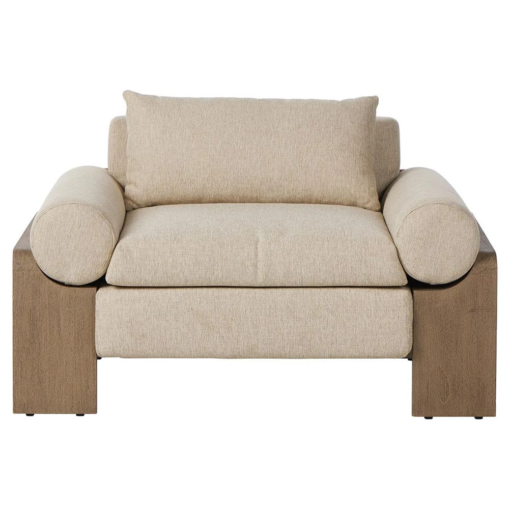 Sandari Modern Classic Beige Upholstered Teak Outdoor Chair