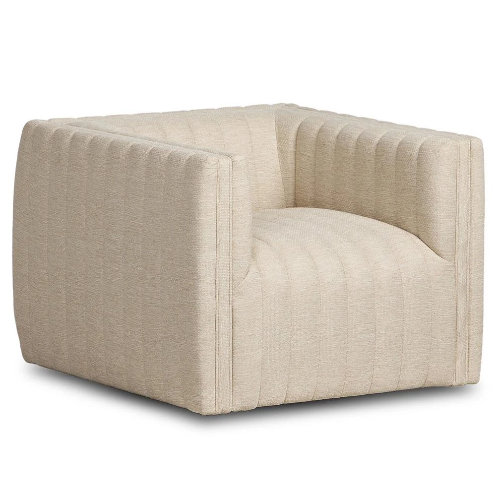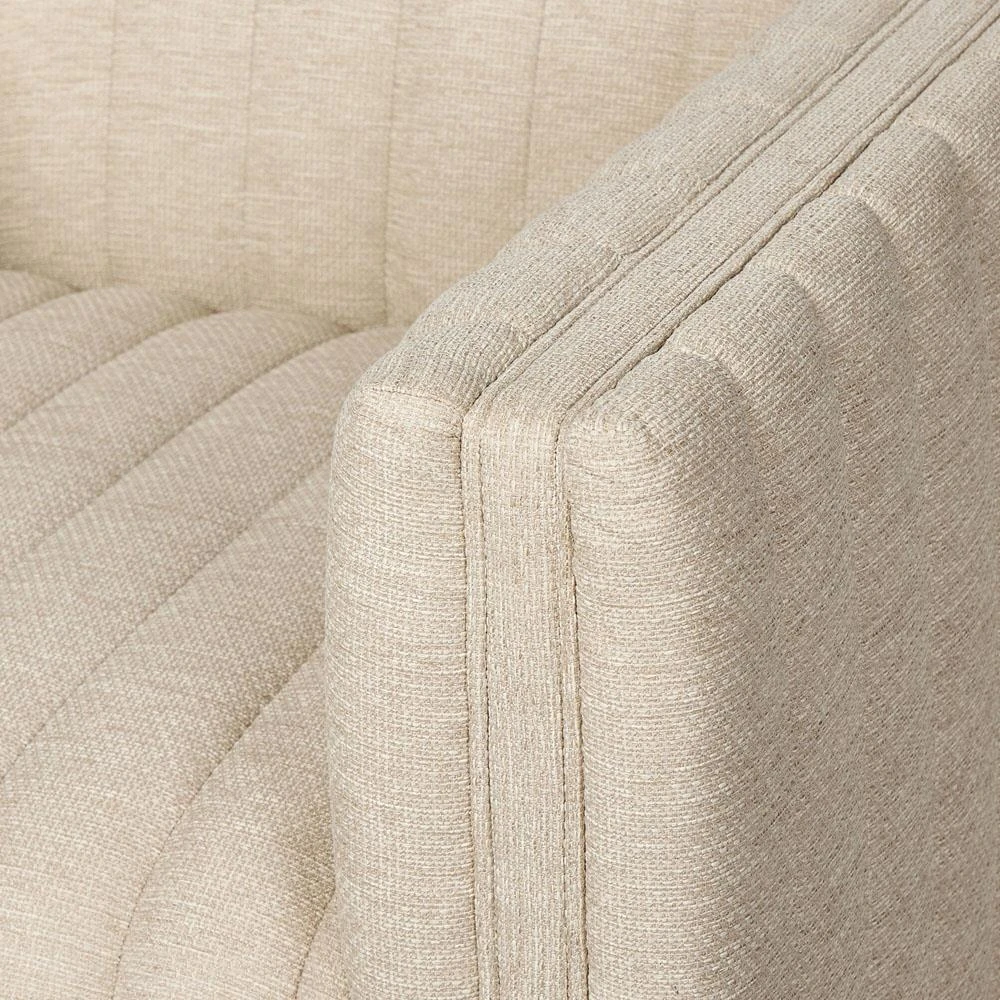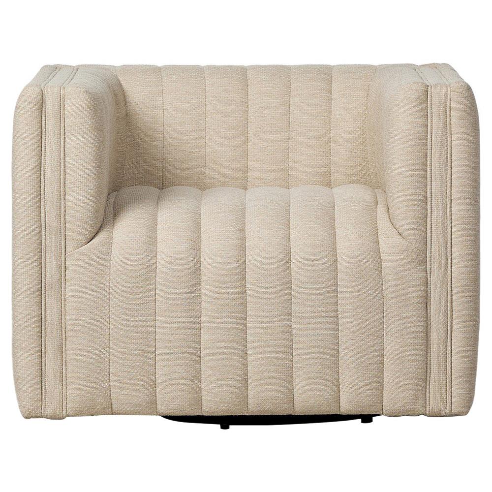 • Leo Mid Century Modern Beige Upholstered Leather Swivel Tufted Occasional Chair|Kathy Kuo Home