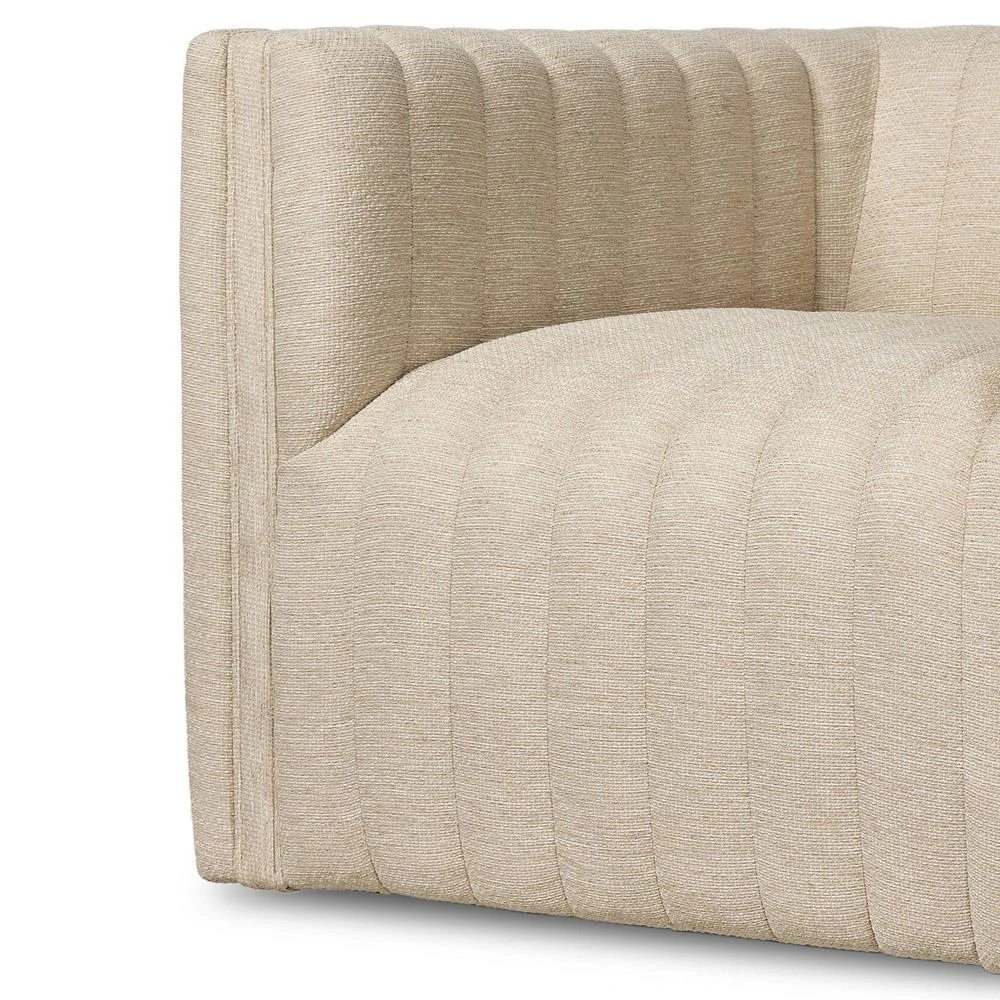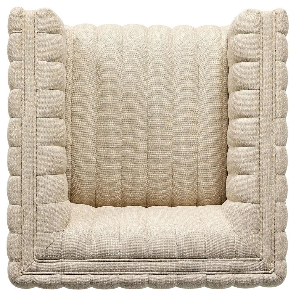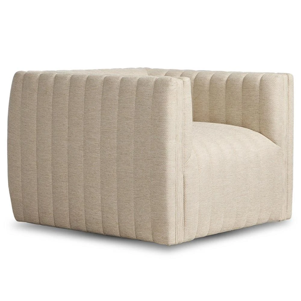 • Features vertical channel tufting across the entire surface, including the backrest, seat, and armrests
