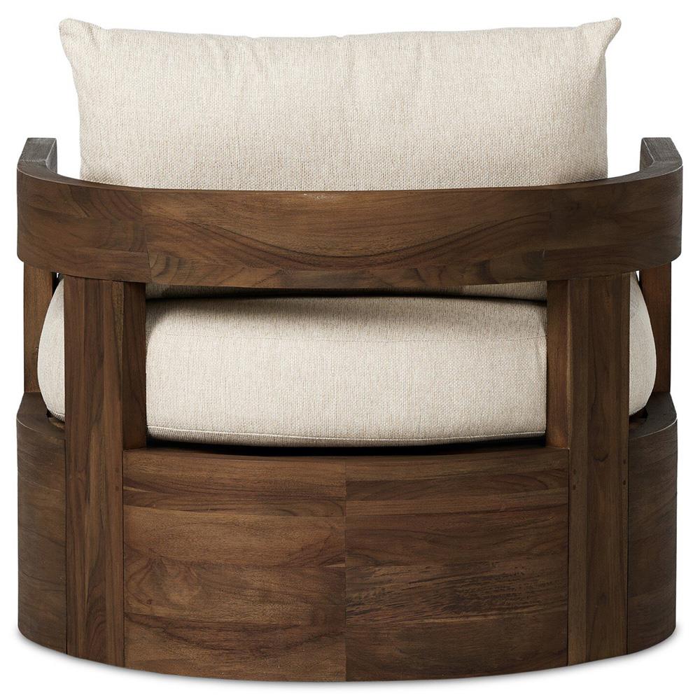 Aviel Rustic Lodge Beige Upholstered Teak Outdoor Barrel Arm Chair