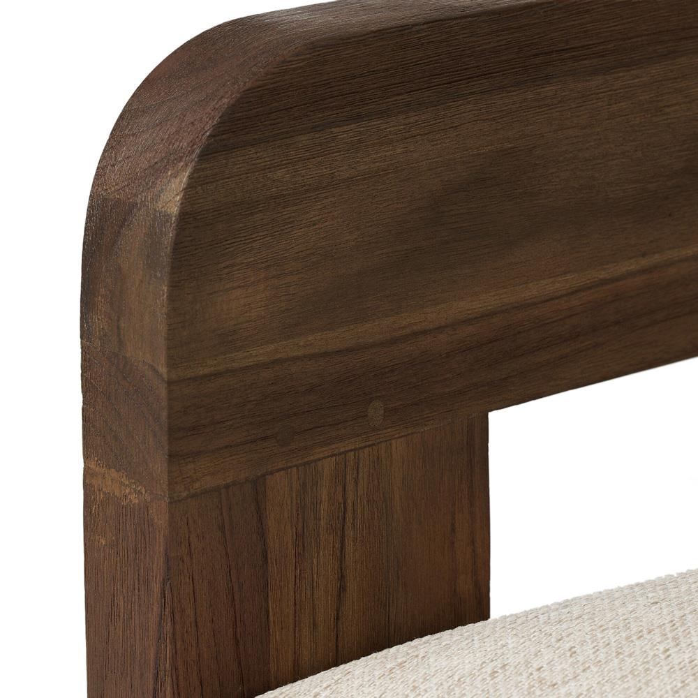 • Aviel Rustic Lodge Brown Upholstered Teak Outdoor Dining Arm Chair|Kathy Kuo Home
