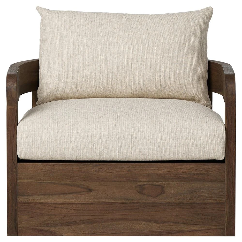 • Aviel Rustic Lodge Brown Upholstered Teak Outdoor Swivel Chair|Kathy Kuo Home