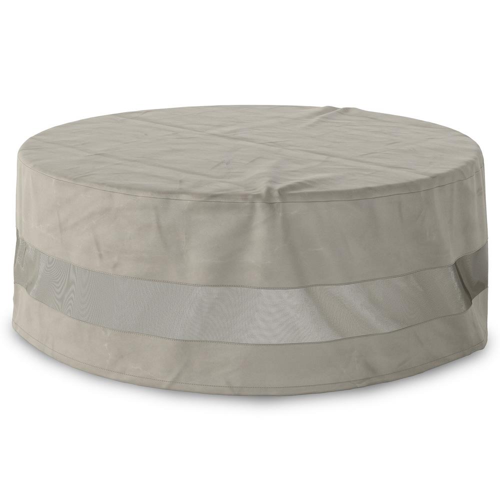 • This weatherproof round coffee table cover is designed to fit pieces up to 16.75 inches high x 36.25 inches wide x 36.25 inches deep. It's recommended to keep the bottom from touching the ground, and if the cover is taller than the furniture piece, add a pillow or object underneath to help ventilate