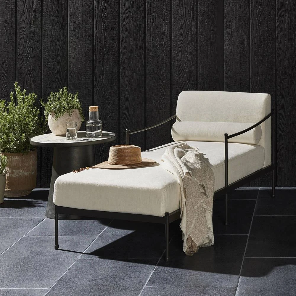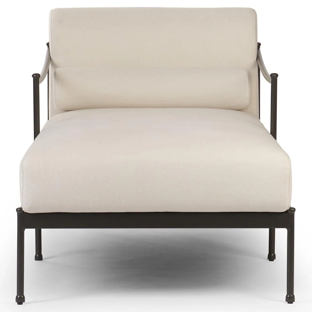 Aurore French White Canvas Cushion Metal Outdoor Chaise Lounge