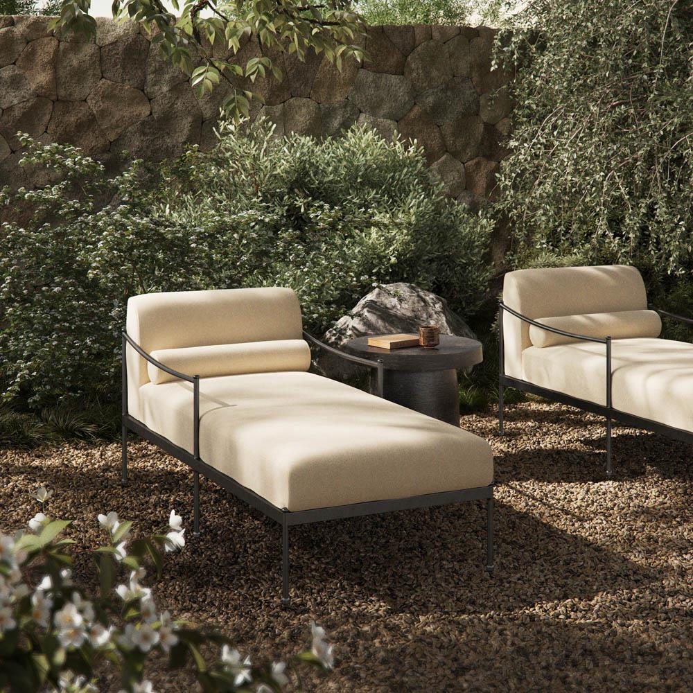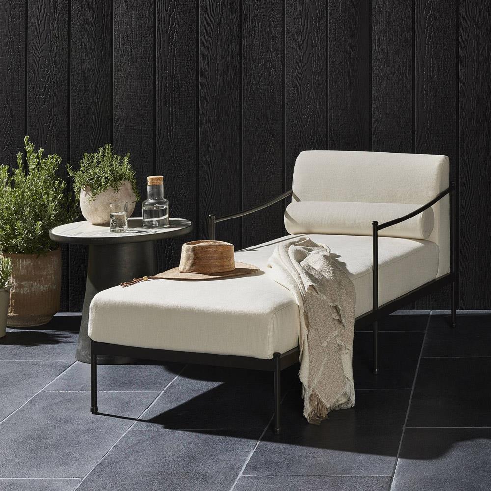 • Aurore French White Canvas Cushion Metal Outdoor Chaise Lounge|Kathy Kuo Home