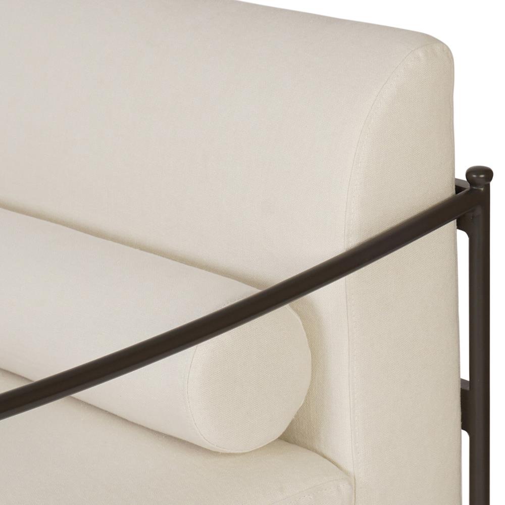 • Upholstered in Bombay flax fabric. Fabric content: 100% hemp; Back Cushion Fill: 93% polyurethane foam pad and 7% polyester fiber batting; Seat Fill: 93% polyurethane foam pad and 7% polyester fiber batting