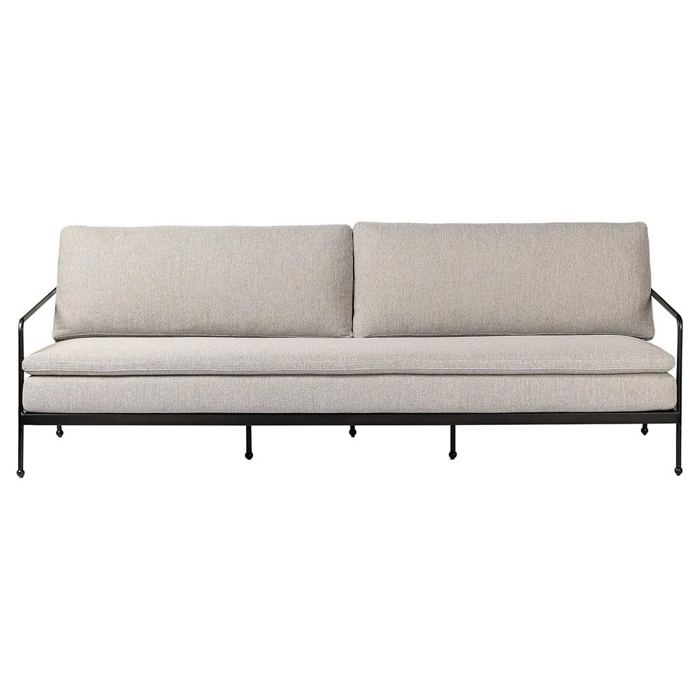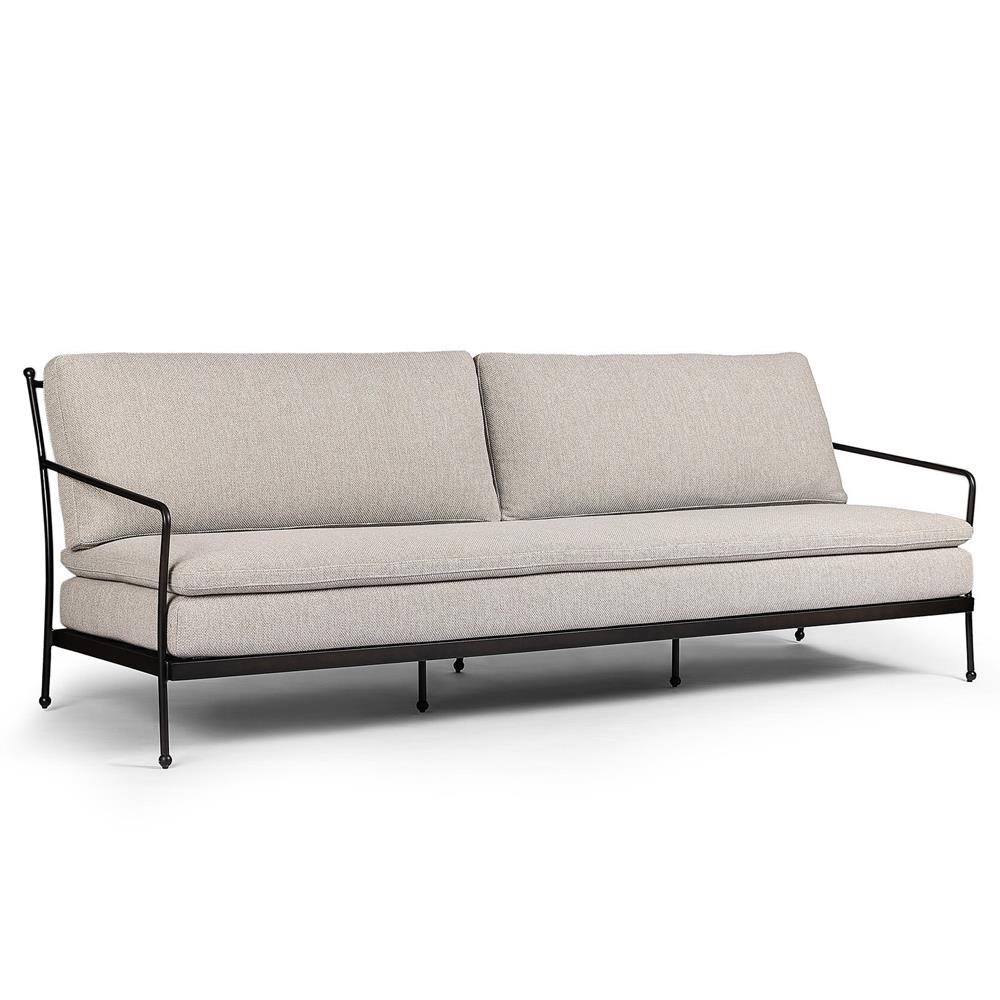 • Hermine French Country Beige Sunbrella Black Aluminum Outdoor Sofa - 85"|Kathy Kuo Home