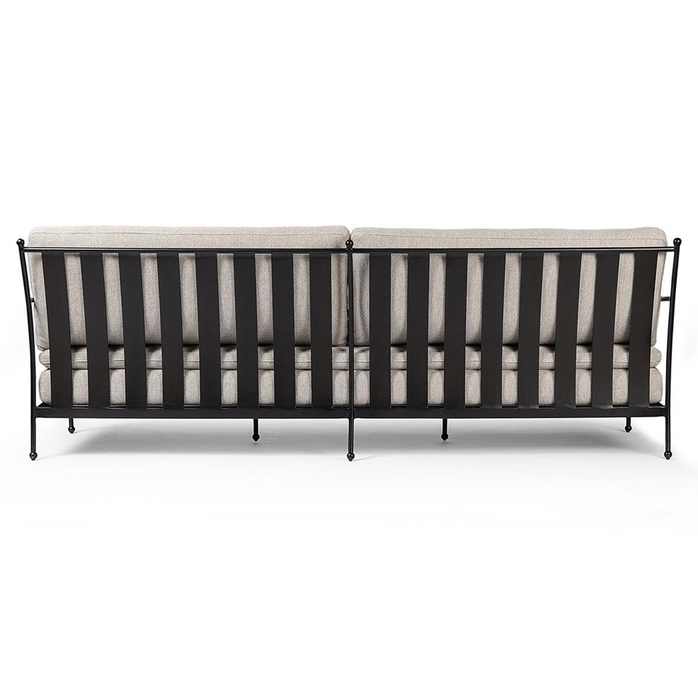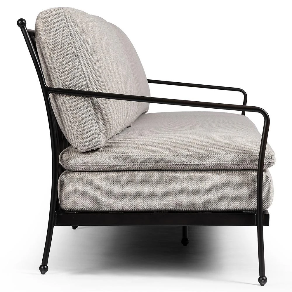 Gretchen French Country Grey Upholstered Black Aluminum Outdoor Sofa - 96"