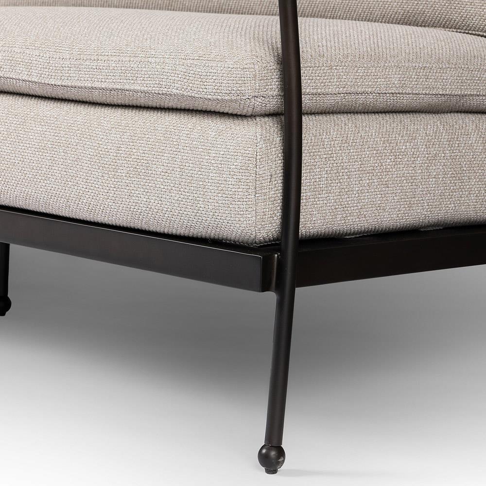 • Upholstered in grey fabric. Fabric content: 100% polypropylene; Filling in seat: 90% polyurethane foam pad and 10% polyester fiber batting; Back cushion filling: 70% polyurethane foam pad and 30% polyester fiber batting; Fabric rub count: 90,000