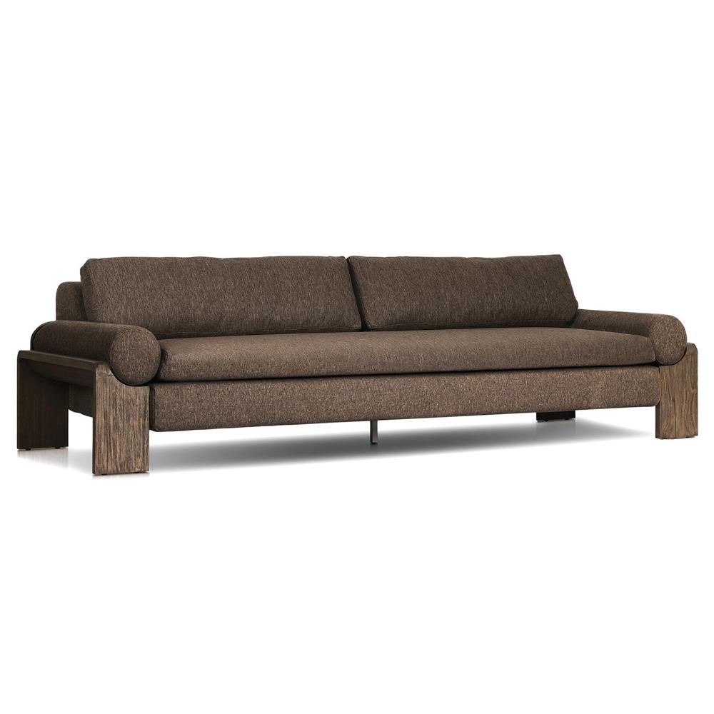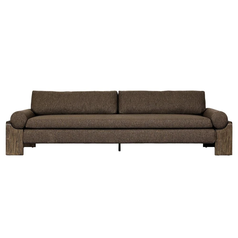 Sandari Modern Classic Brown Upholstered Teak Outdoor Sofa - 104.25"