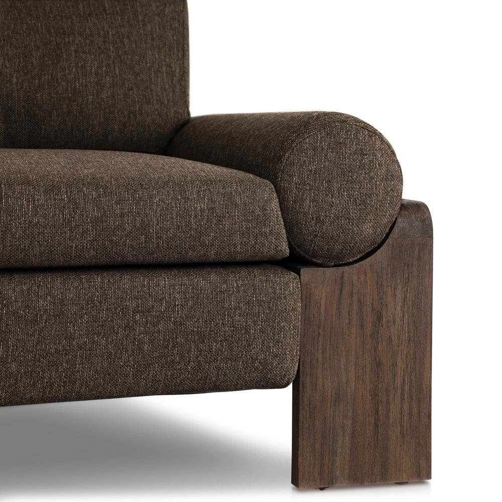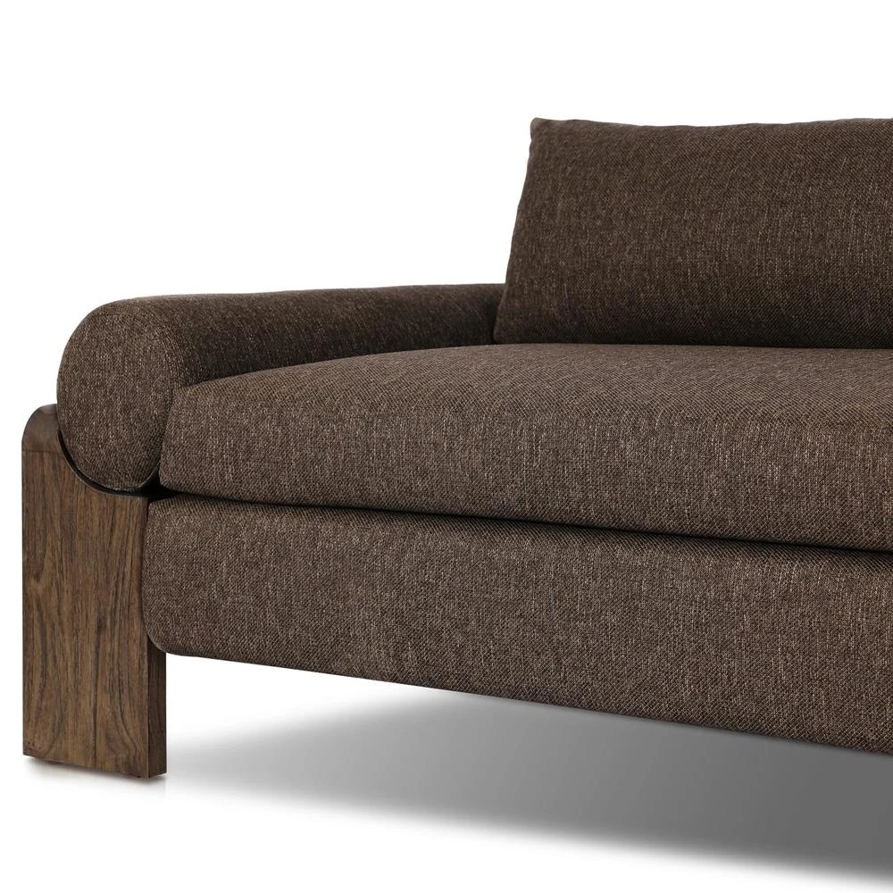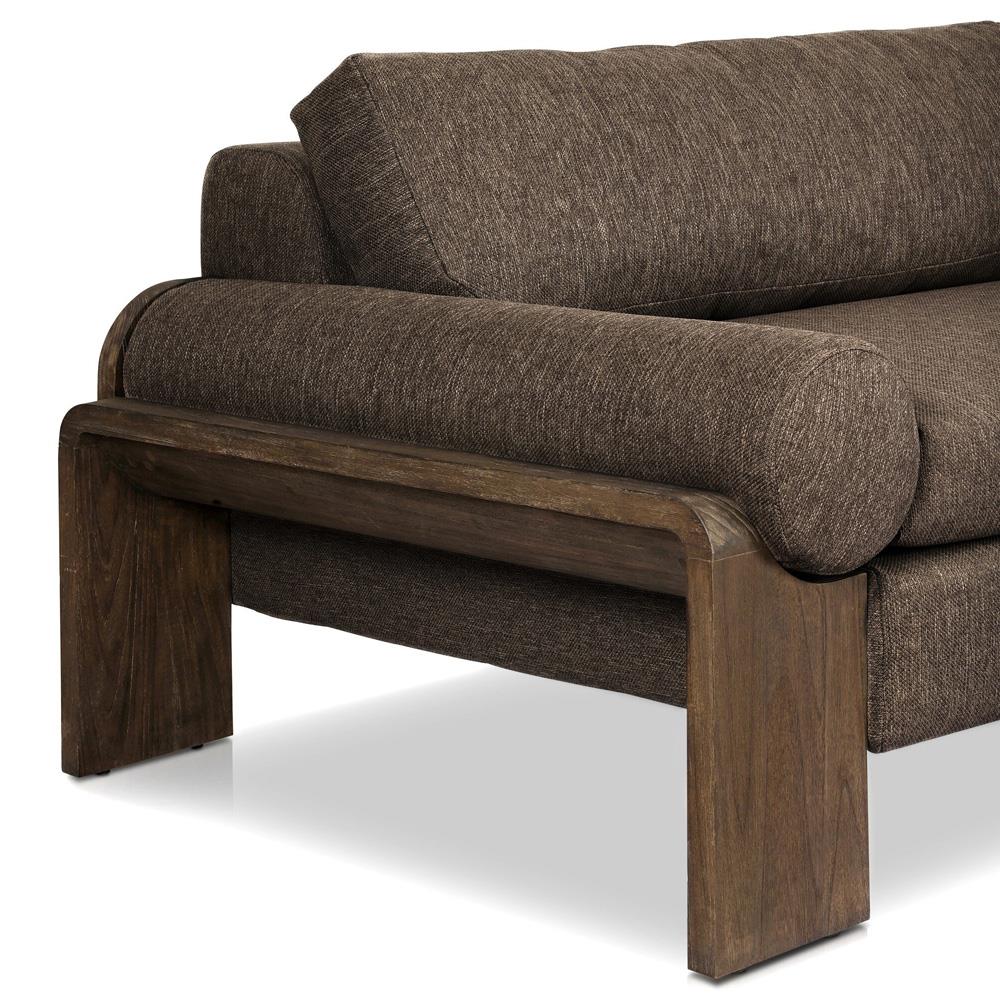 • Upholstered in brown performance fabric. Fabric content: 100% olefin; Fabric rub count: 16,000; Filling in back cushion: 90% polyester fiber, 10% polyester fiber batting; Filling in seat: 91% polyurethane foam pad, 9% polyester fiber batting