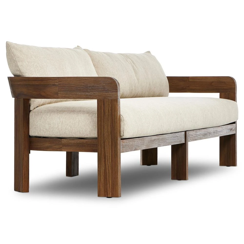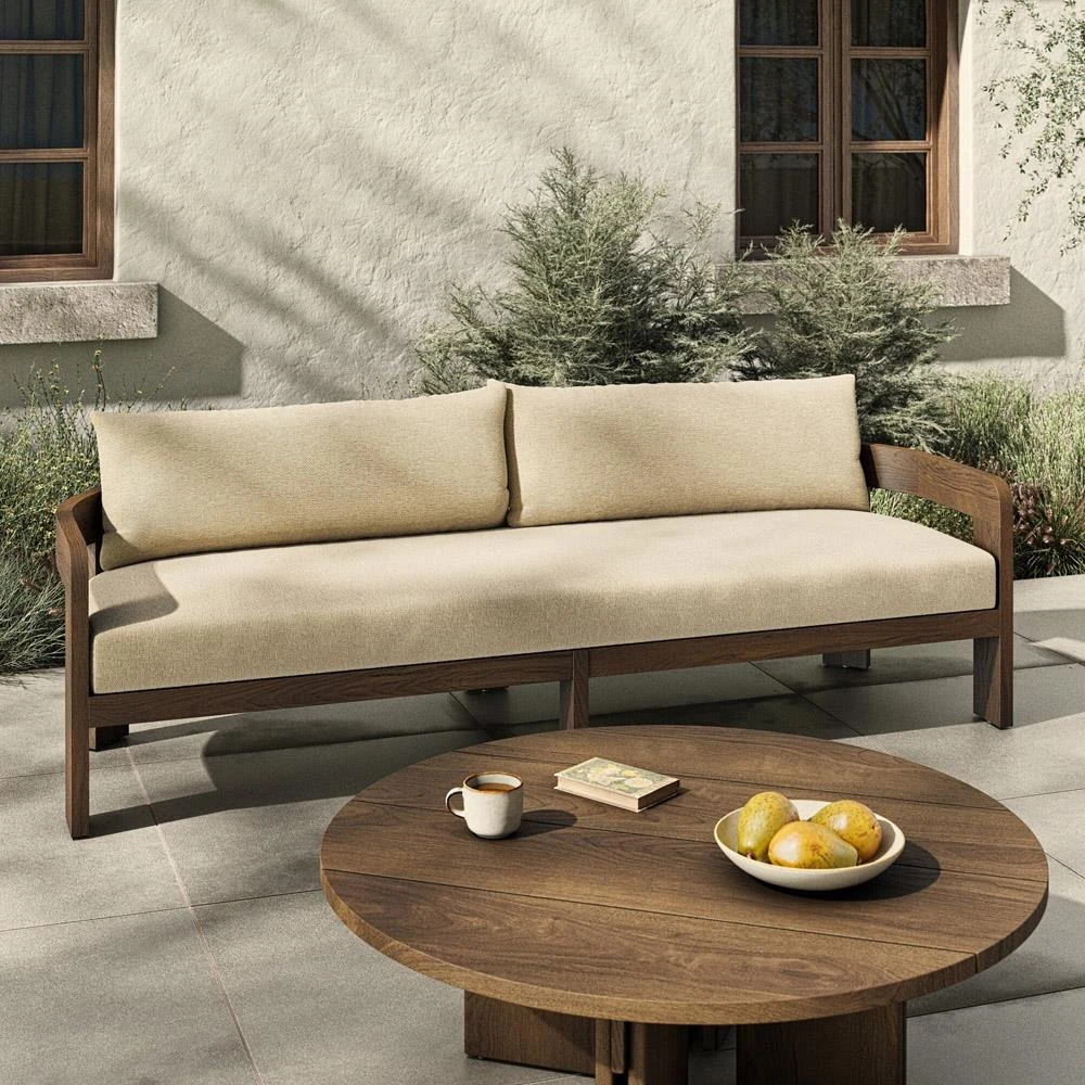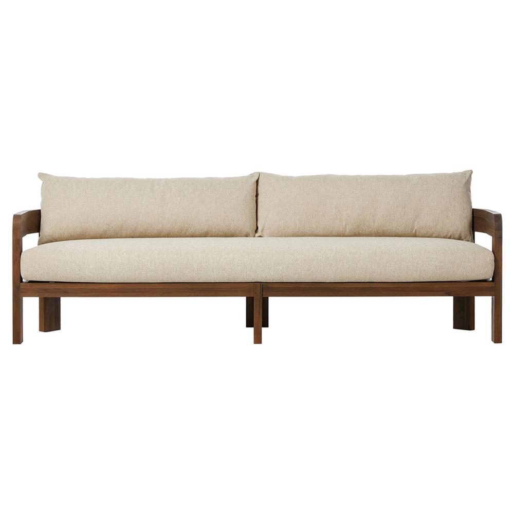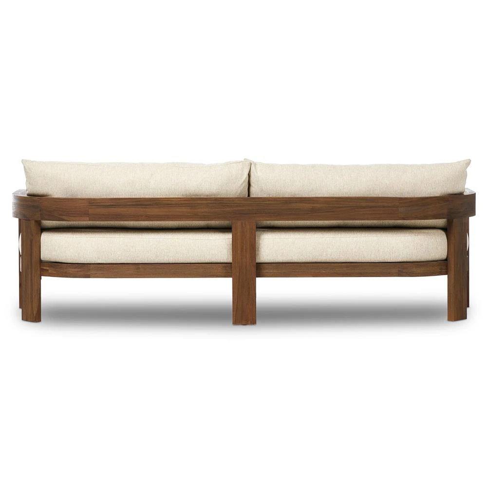 Amara Coastal Beach Beige Upholstered Teak Wood Outdoor Sofa - 86"W