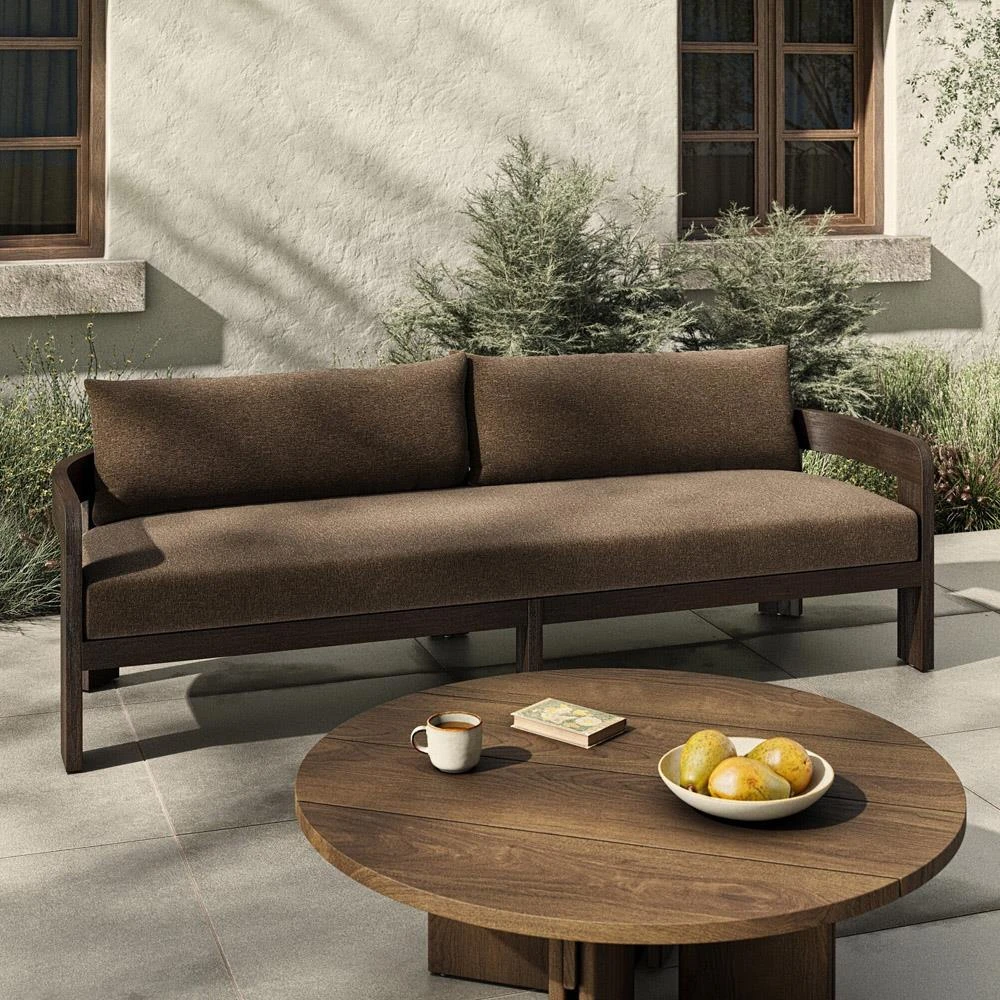Aviel Rustic Lodge Brown Upholstered Teak Outdoor Sofa - 96"