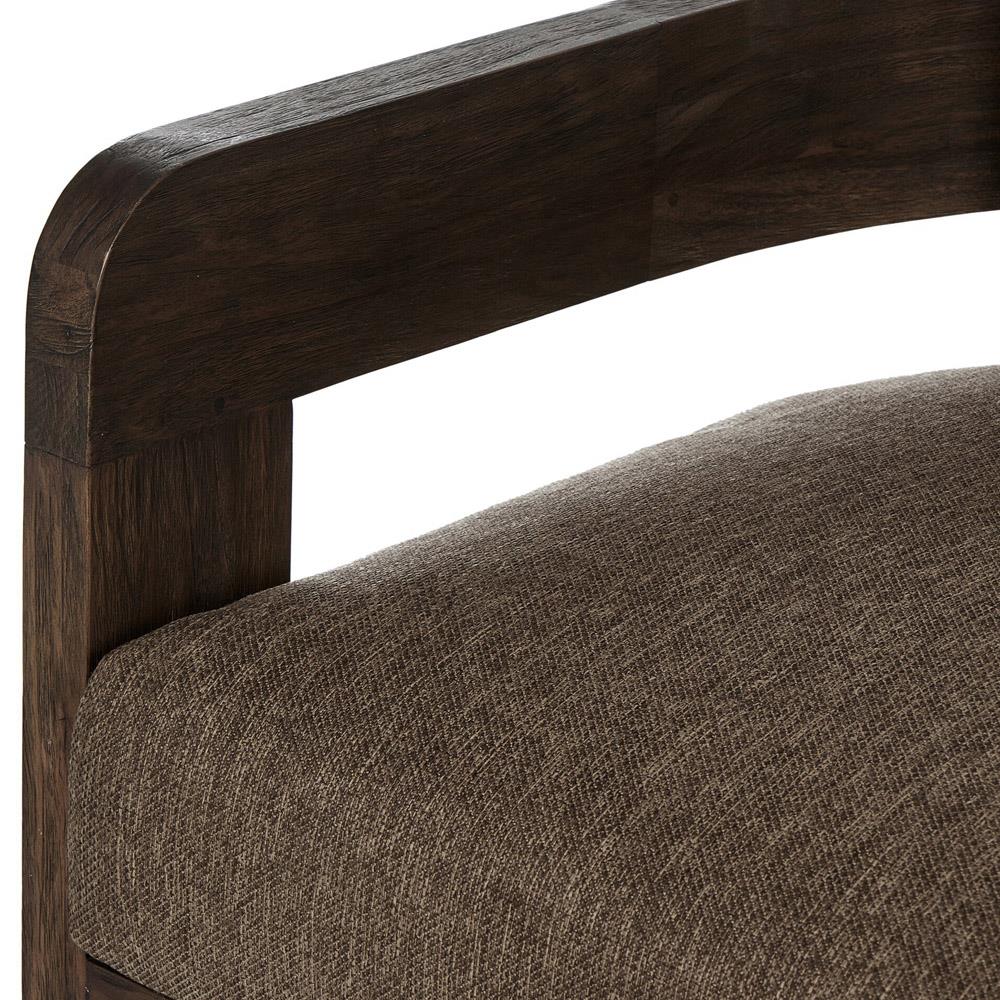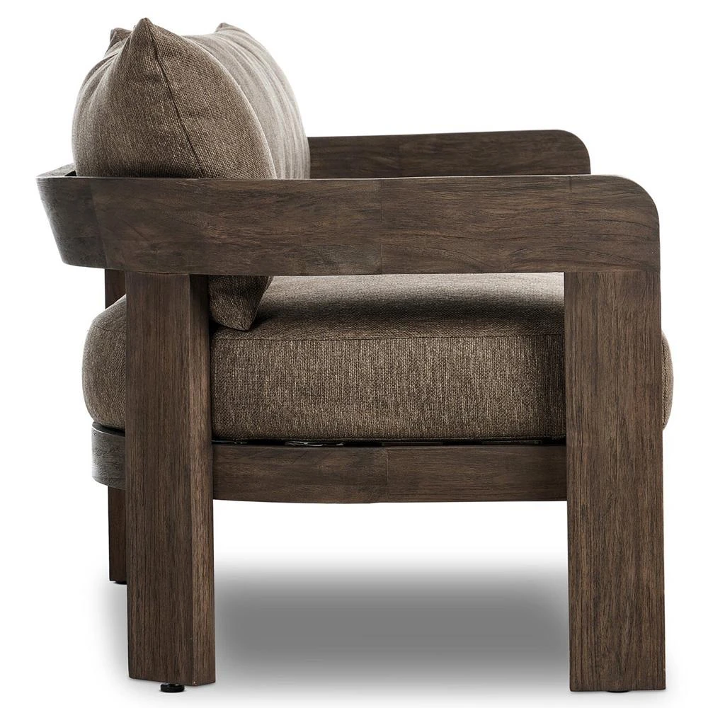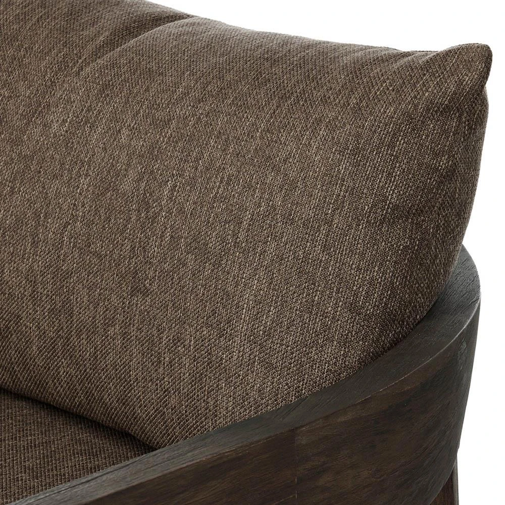 • Aviel Rustic Lodge Brown Upholstered Teak Outdoor Barrel Arm Chair|Kathy Kuo Home