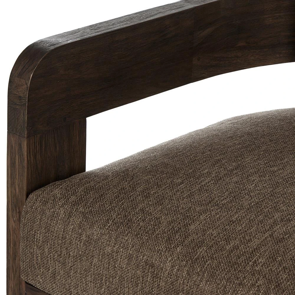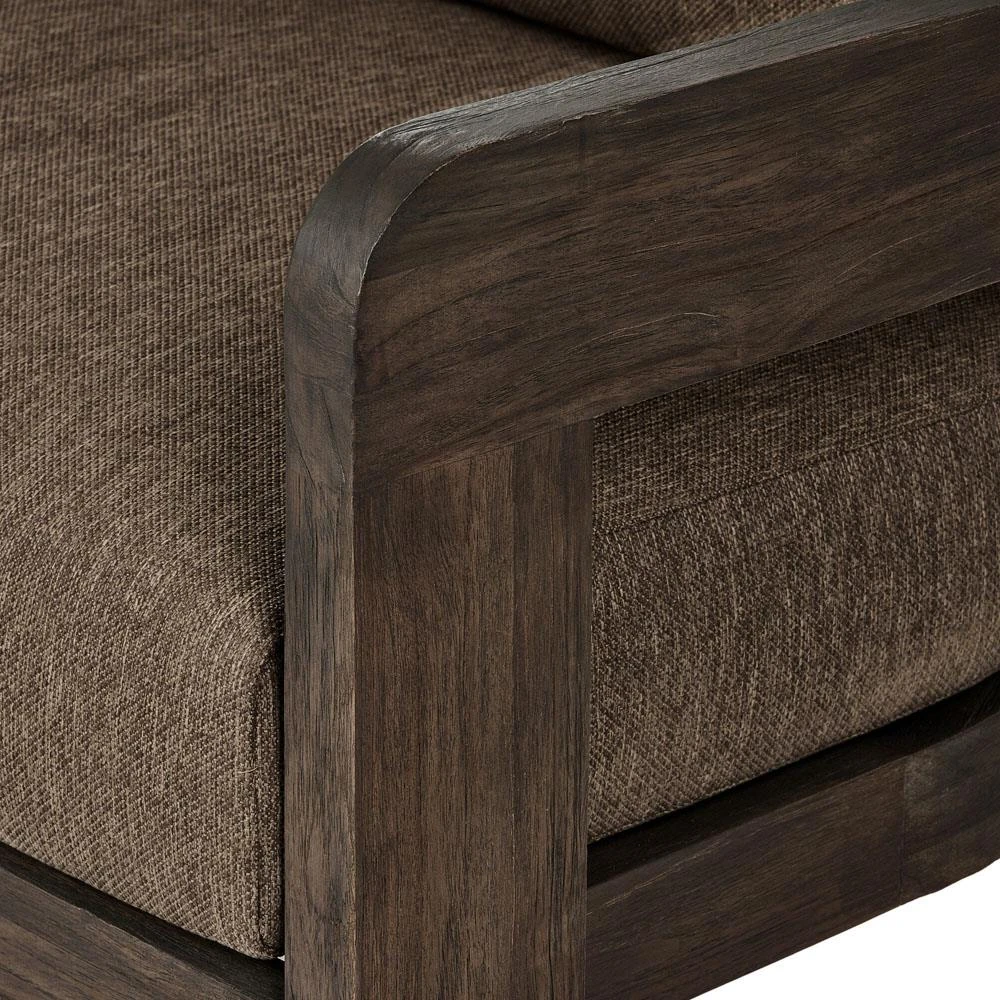 • Aviel Rustic Lodge Brown Upholstered Teak Outdoor Dining Arm Chair|Kathy Kuo Home