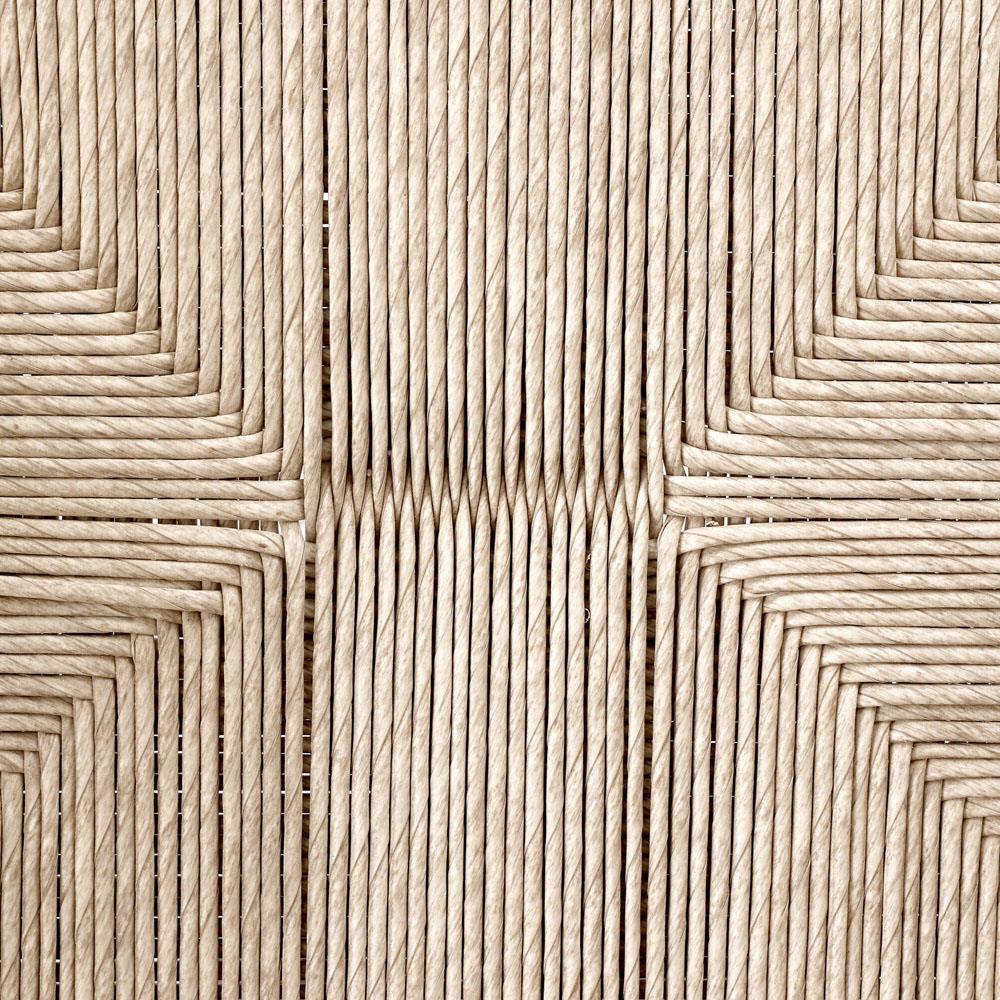 • Cheryl Modern White Cushion Woven Rope Natural Teak Outdoor Dining Arm Chair|Kathy Kuo Home