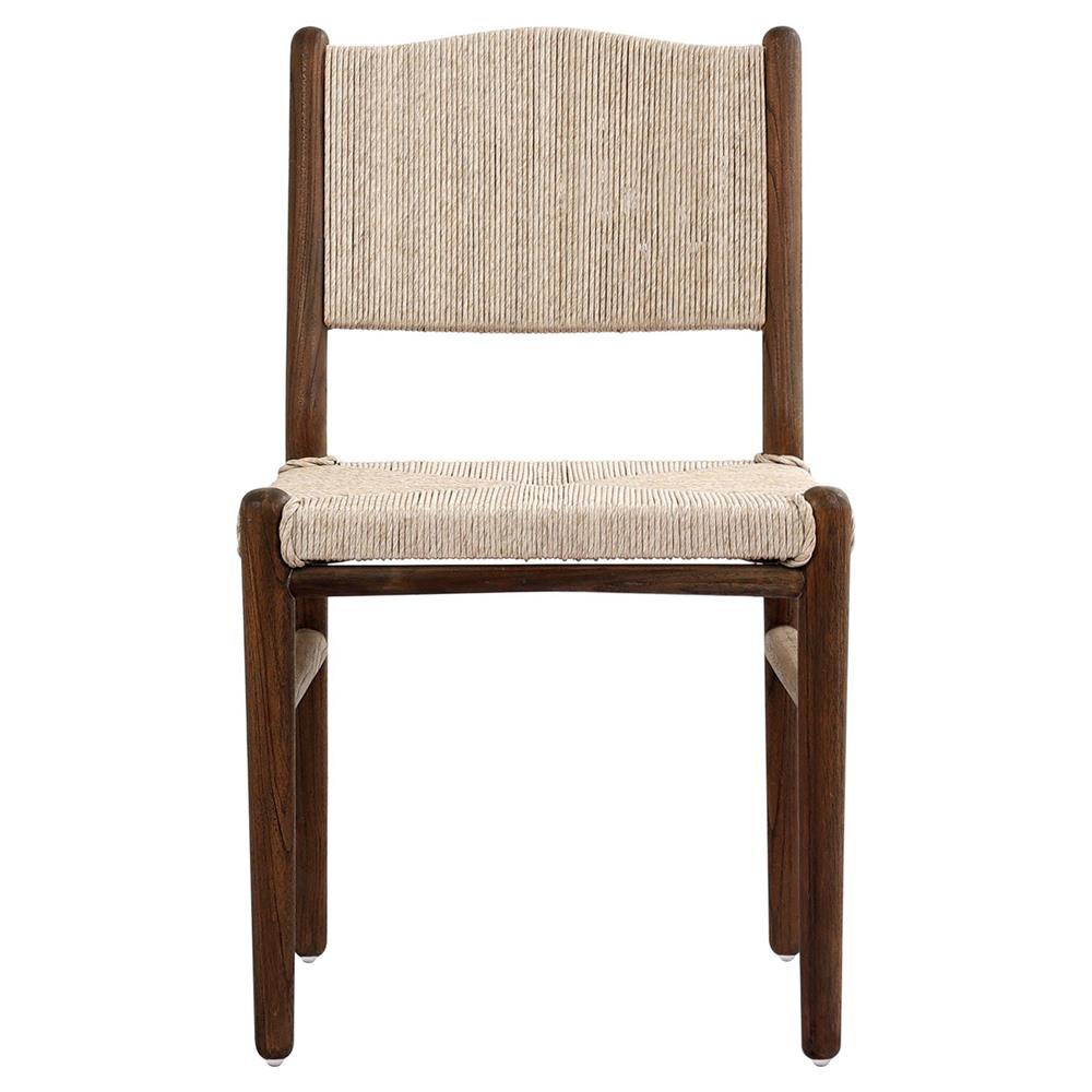 Cassel Coastal Beach Brown Teak Woven Outdoor Dining Chair