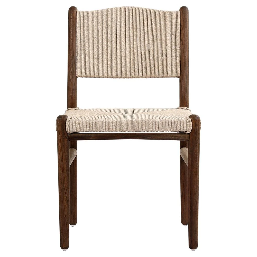 • Cassel Coastal Beach Brown Teak Woven Outdoor Dining Chair|Kathy Kuo Home