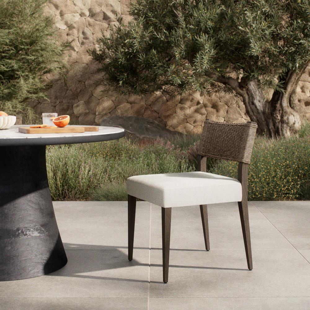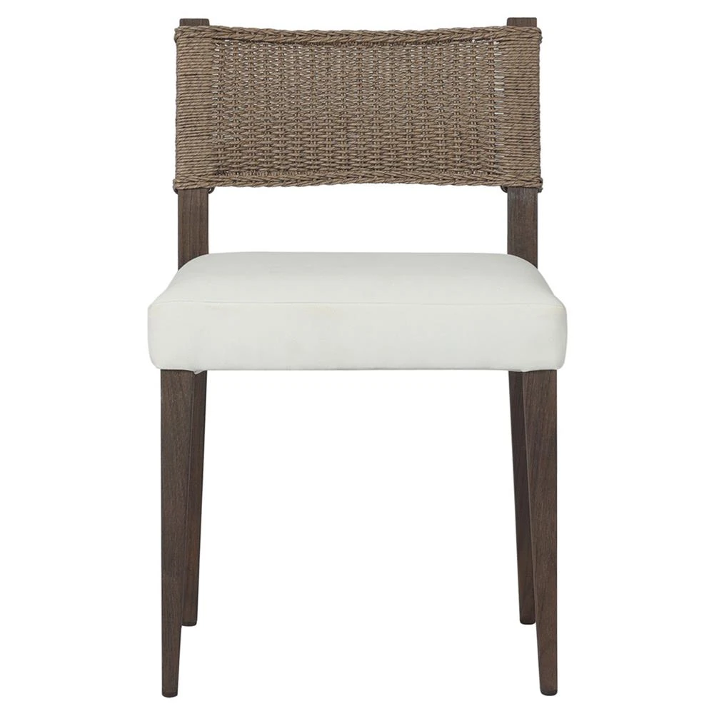 • Cassel Coastal Beach Brown Teak Woven Outdoor Dining Chair|Kathy Kuo Home