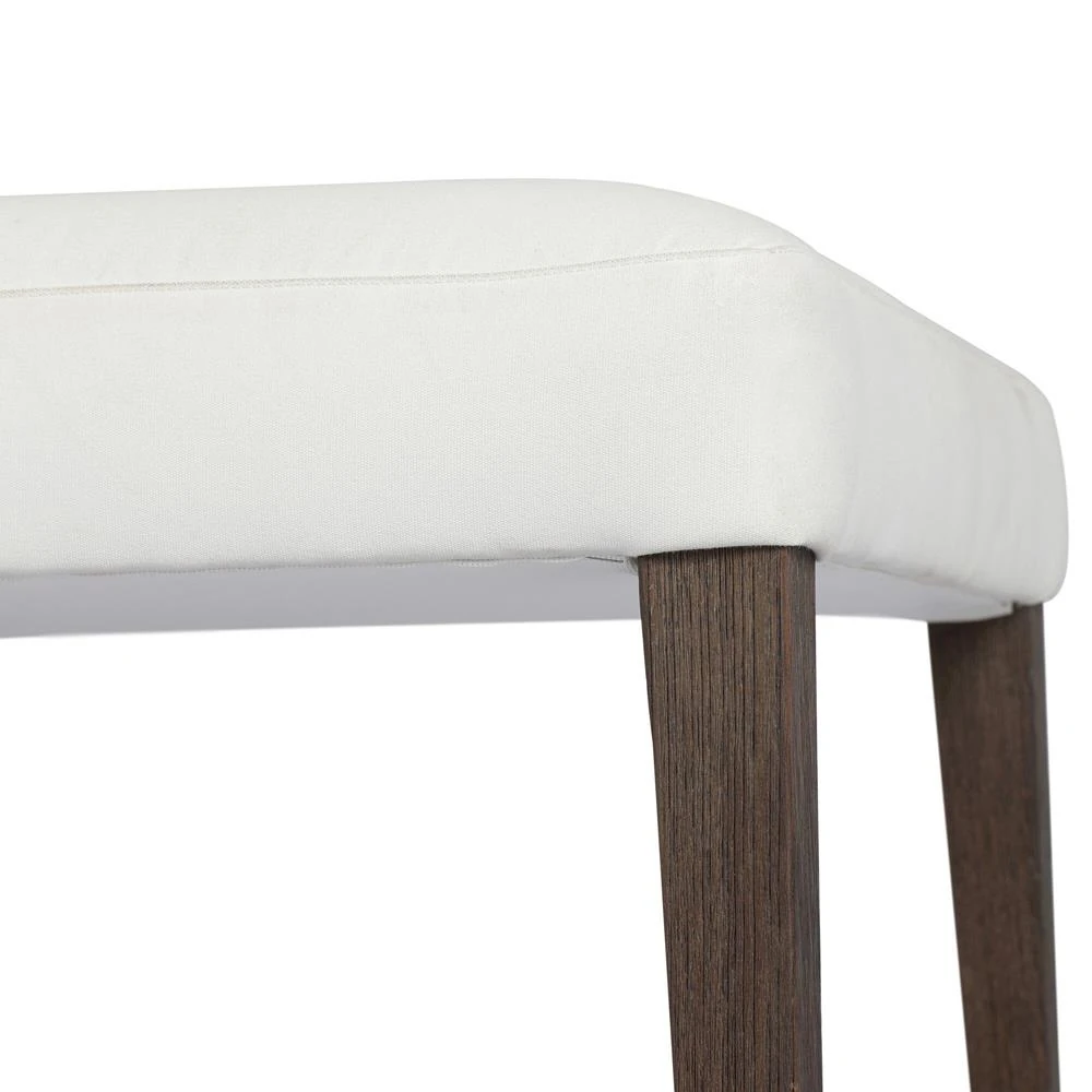• Upholstered in off white fabric. Fabric content: 100% polyethylene; Seat Fill: 74% polyurethane foam pad and 26% polyester fiber batting