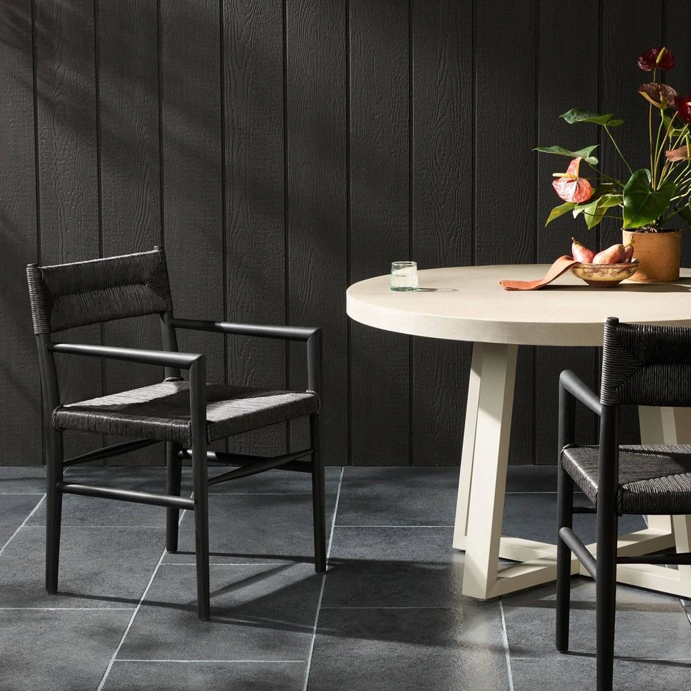 With its timeless shape and neutral hues, the Mable Coastal Beach Black Wicker Teak Outdoor Dining Arm Chair is the perfect piece for a ... more