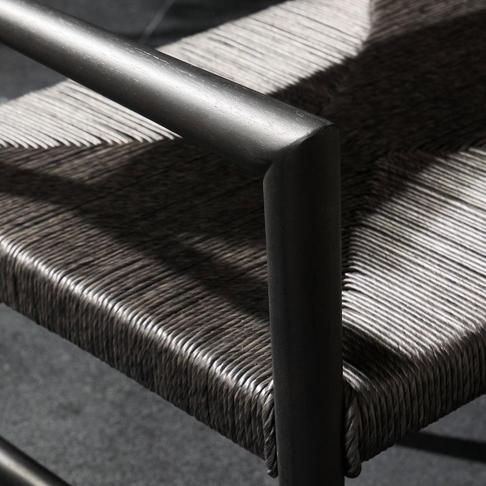 Cheryl Modern Light Grey Cushion Woven Rope Natural Teak Outdoor Dining Arm Chair