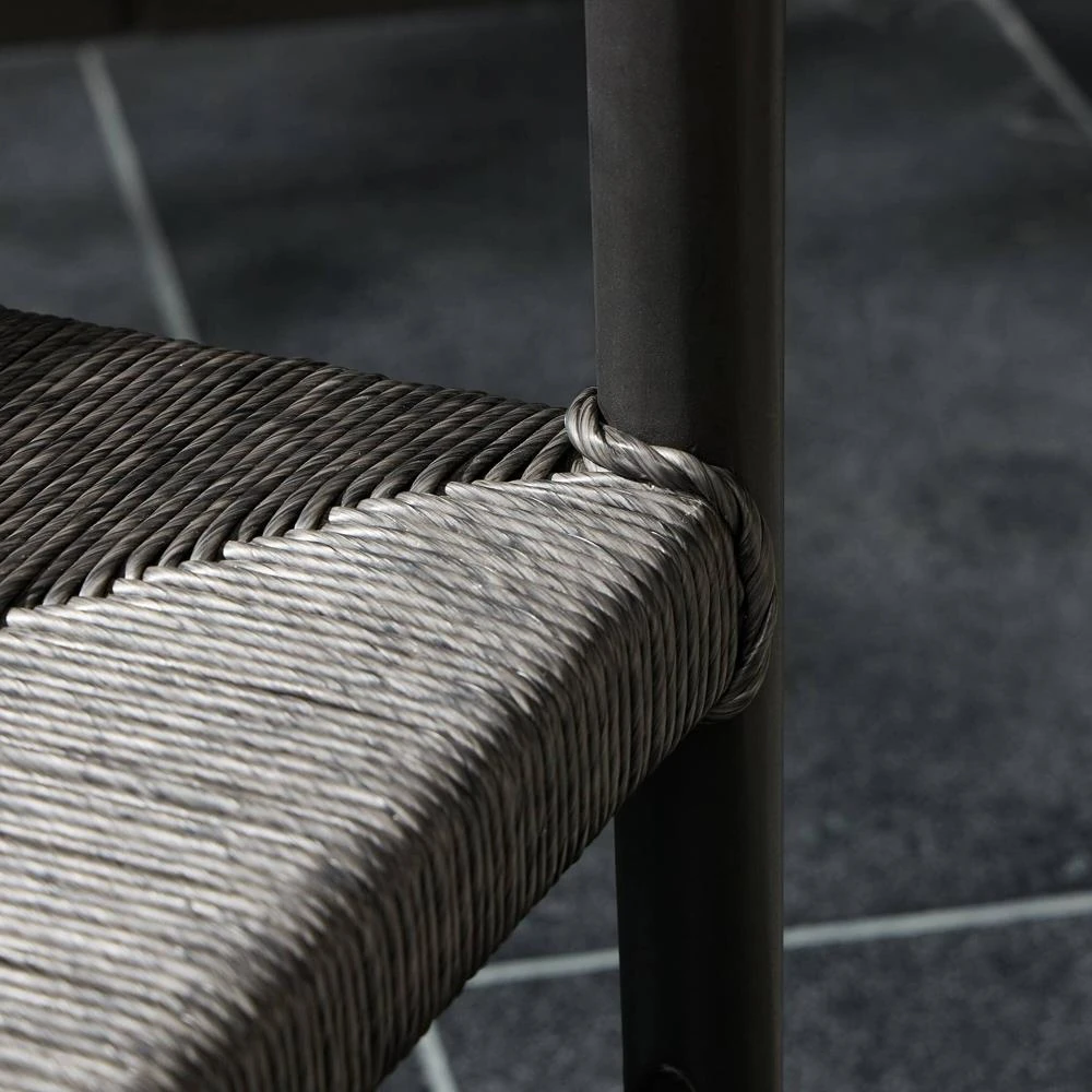 Rosalie Modern Classic Black Aluminum Woven Wicker Outdoor Dining Side Chair