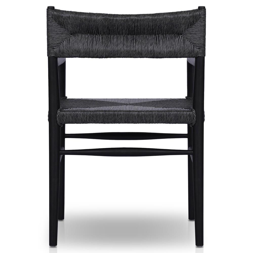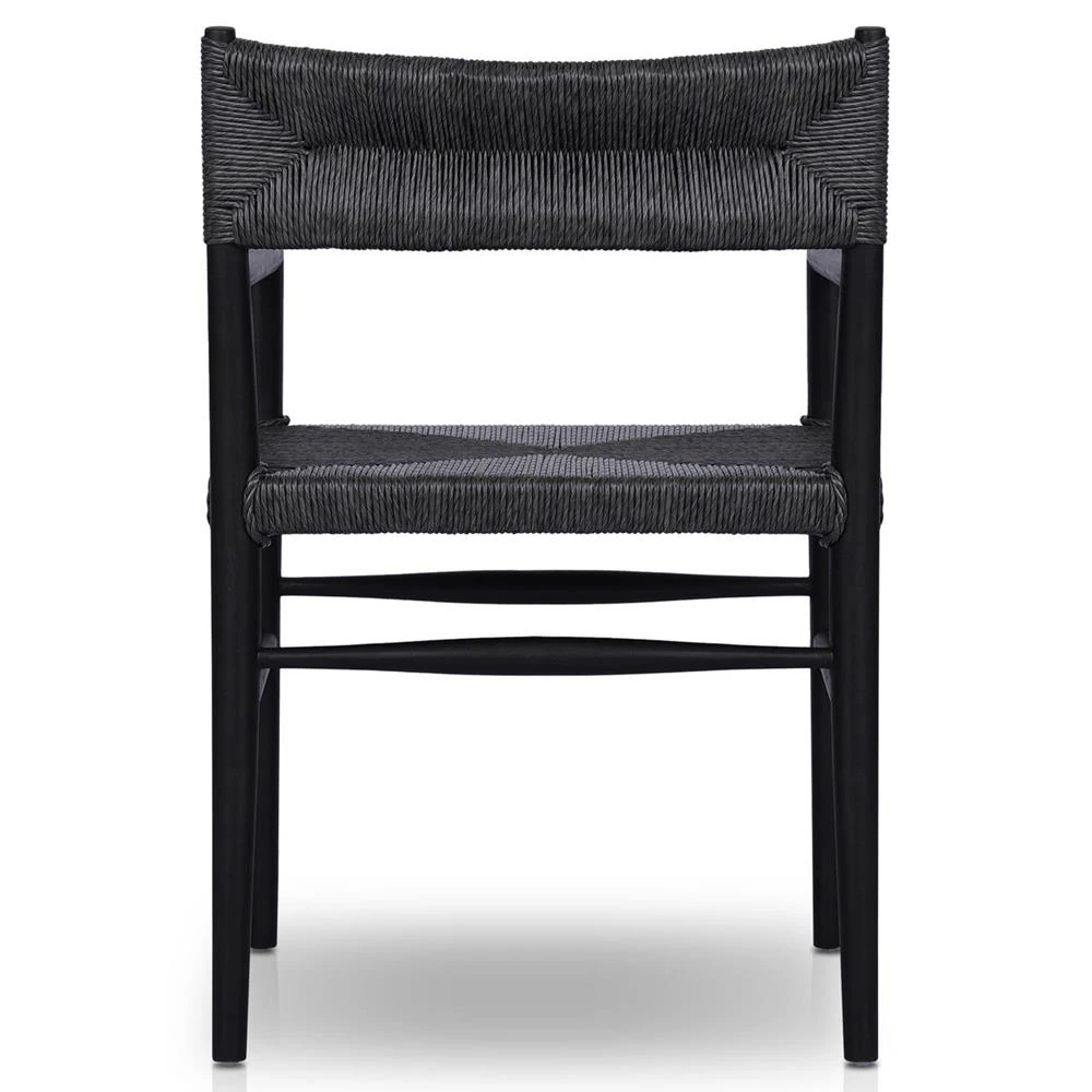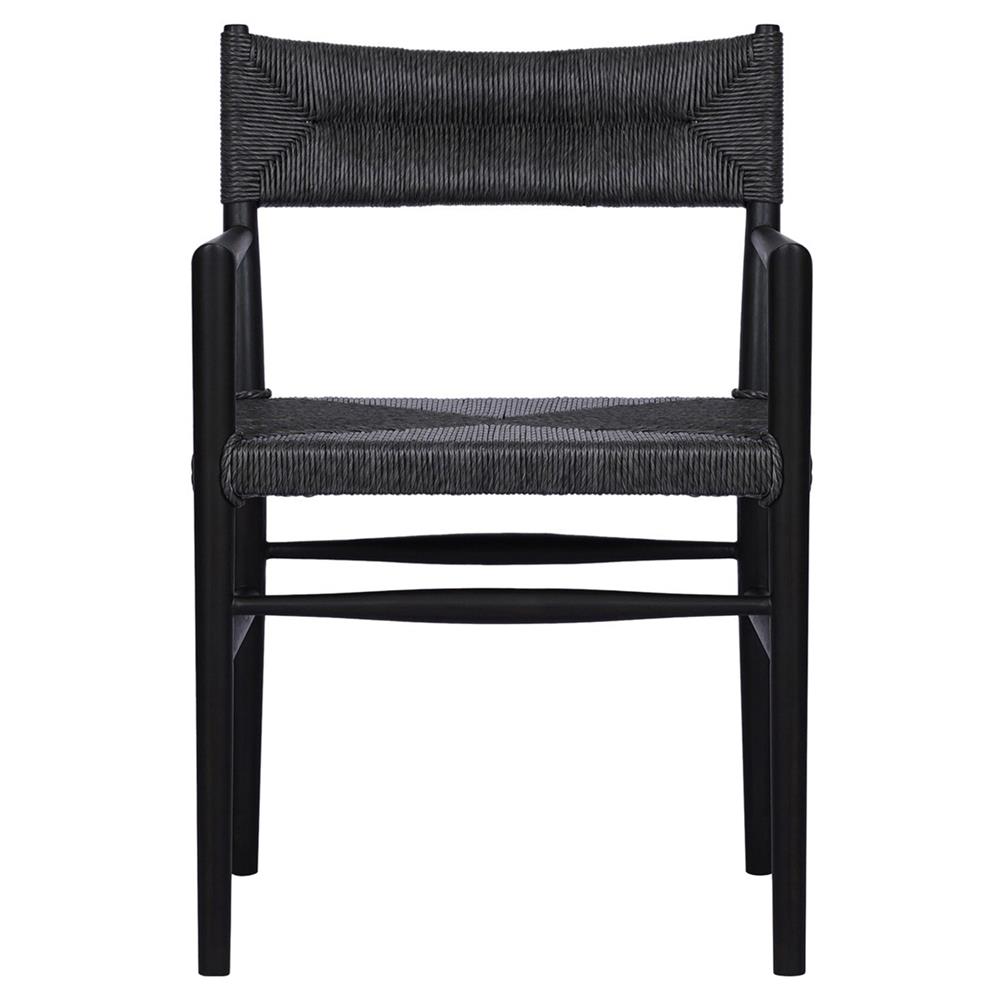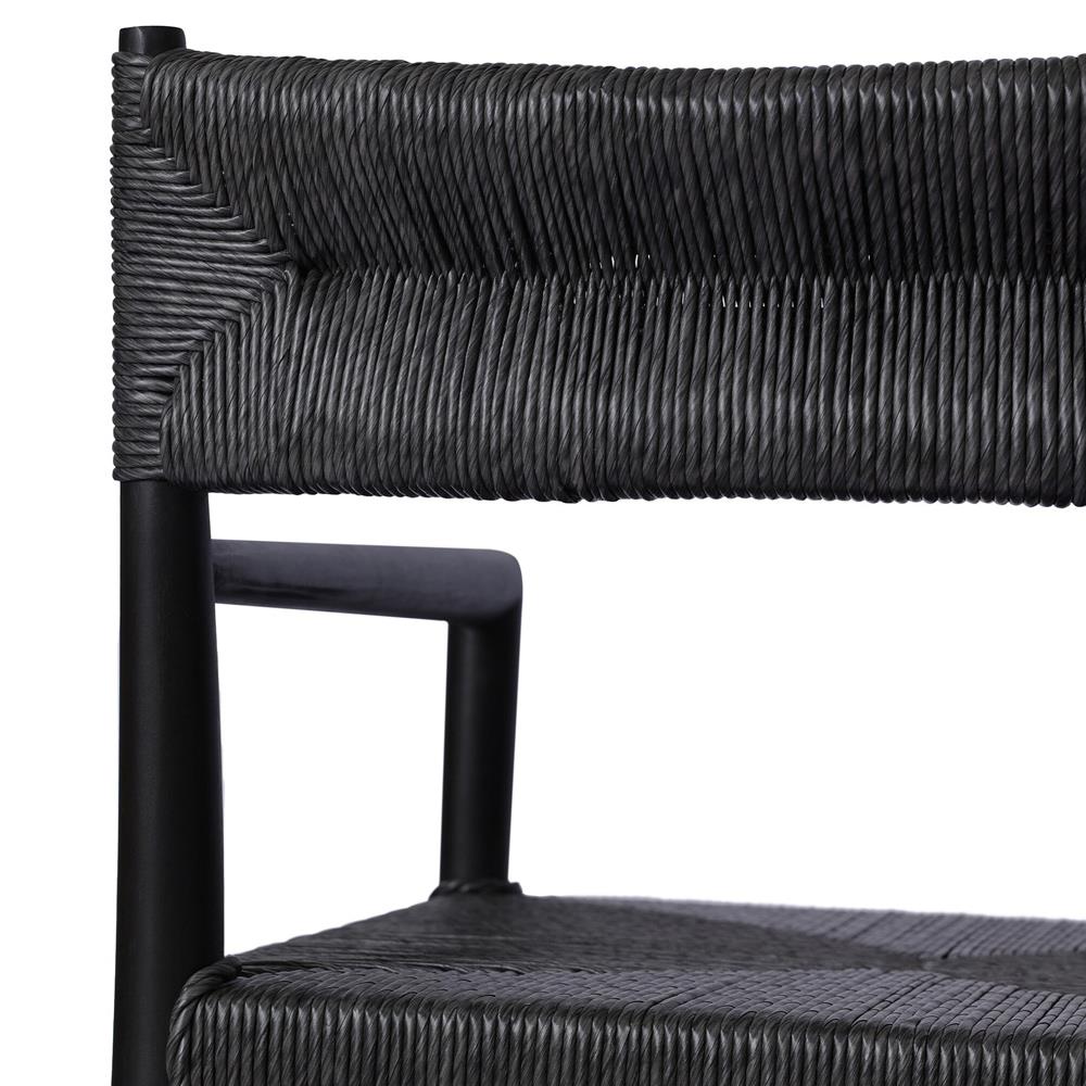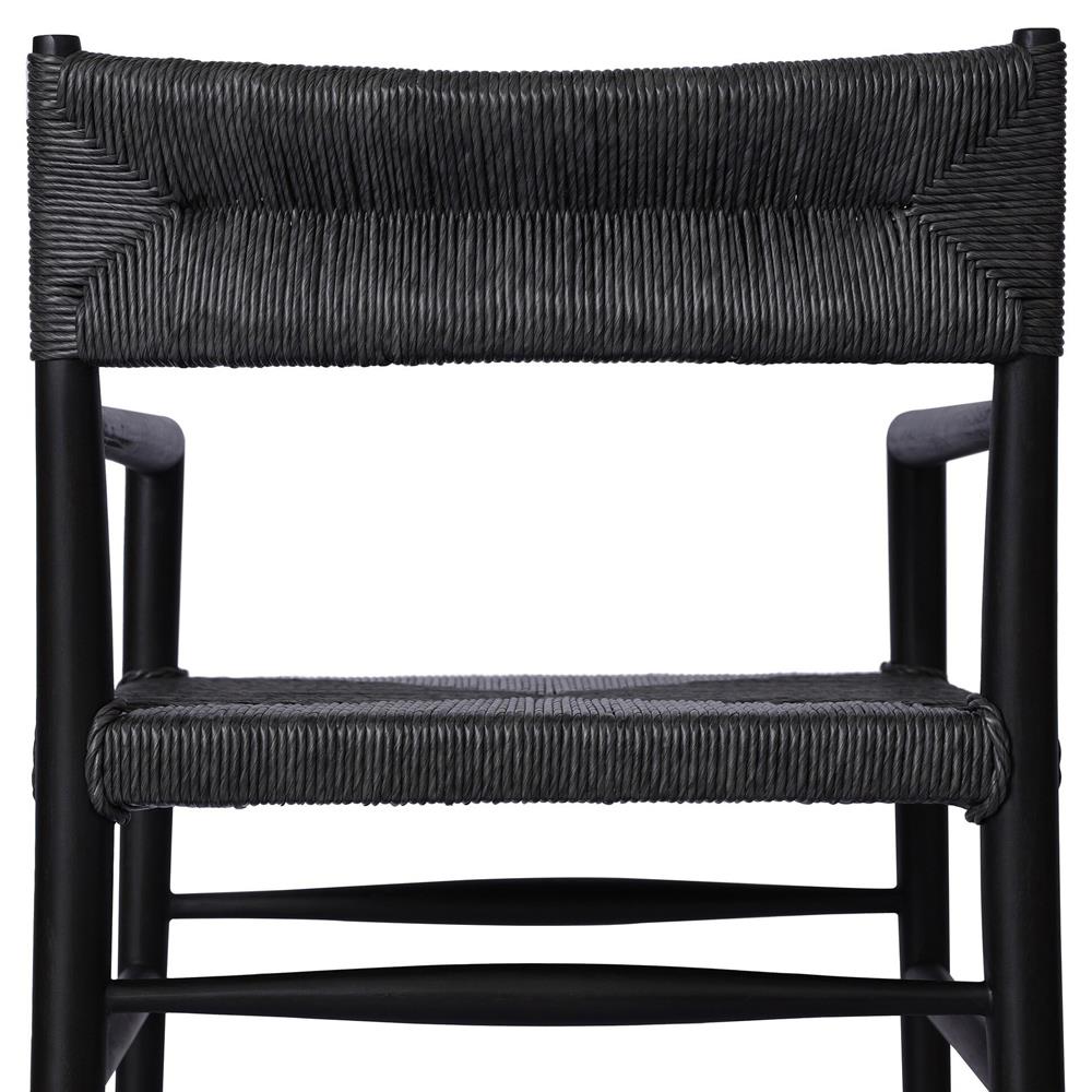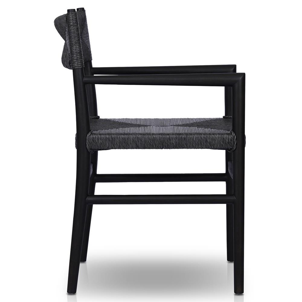 Mable Coastal Beach Black Wicker Teak Outdoor Dining Arm Chair