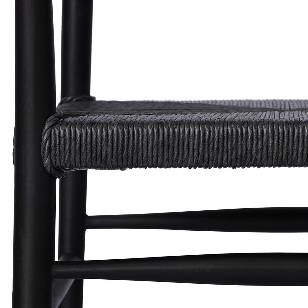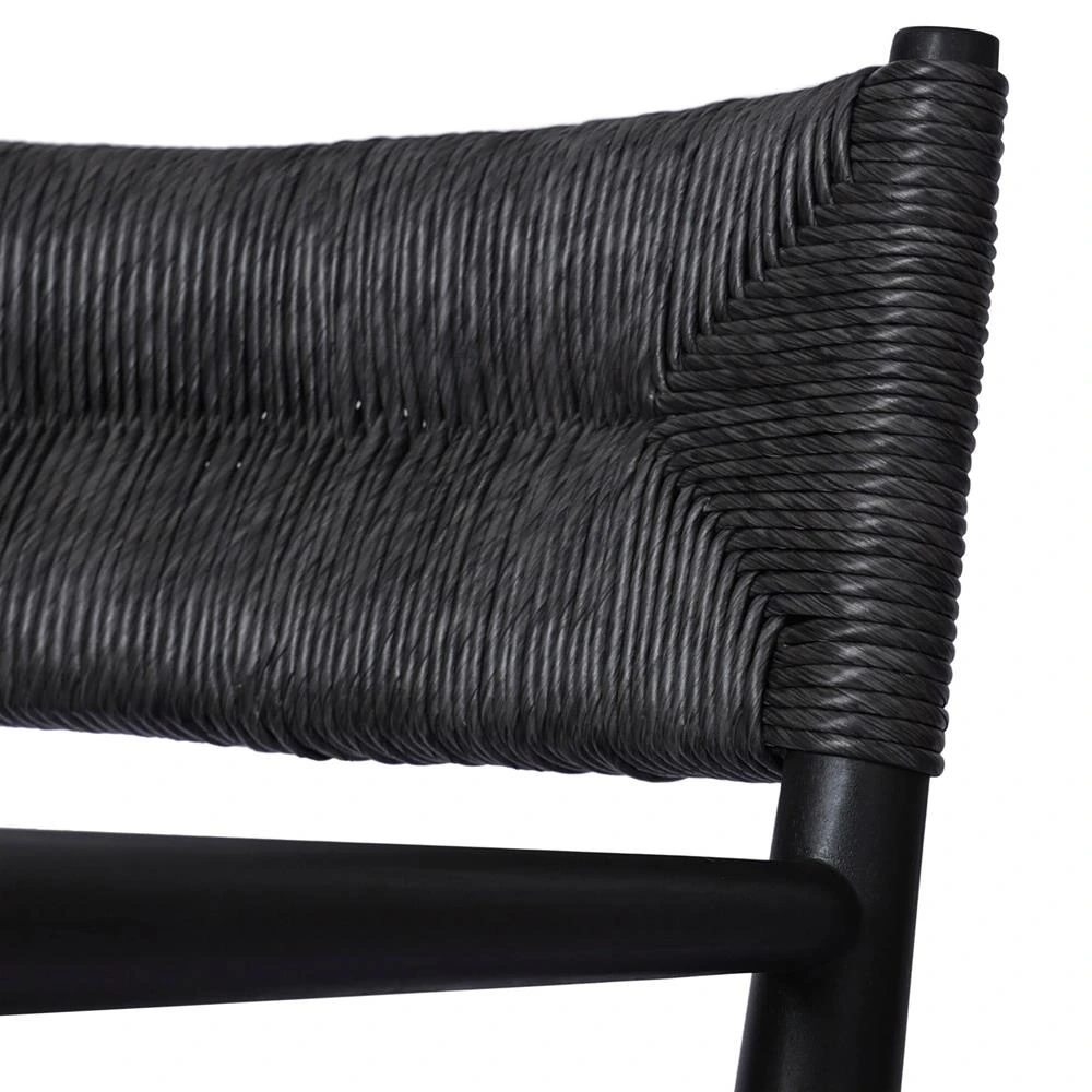 Mable Coastal Beach Black Wicker Teak Outdoor Dining Chair
