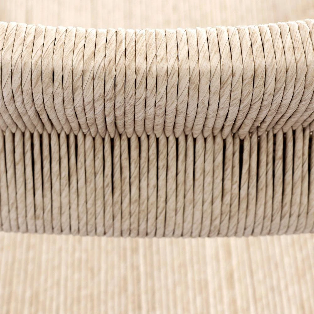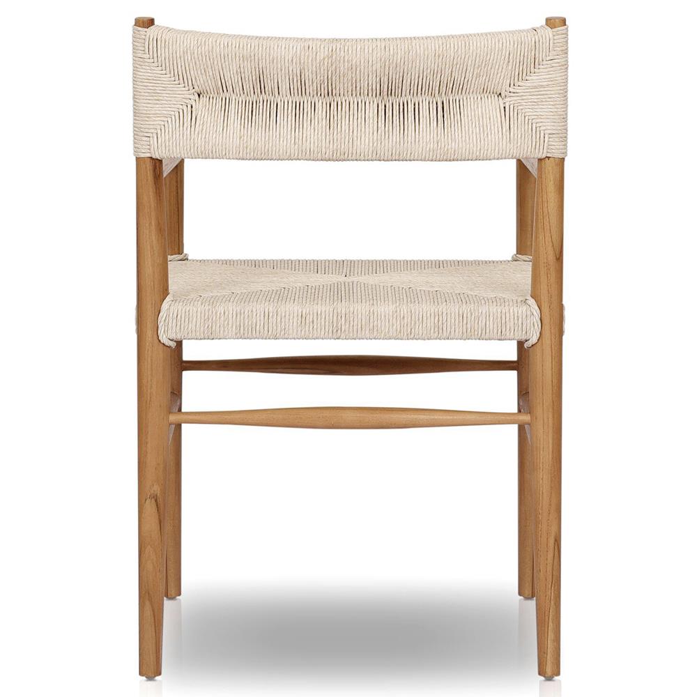 • Cheryl Modern White Cushion Woven Rope Natural Teak Outdoor Dining Arm Chair|Kathy Kuo Home
