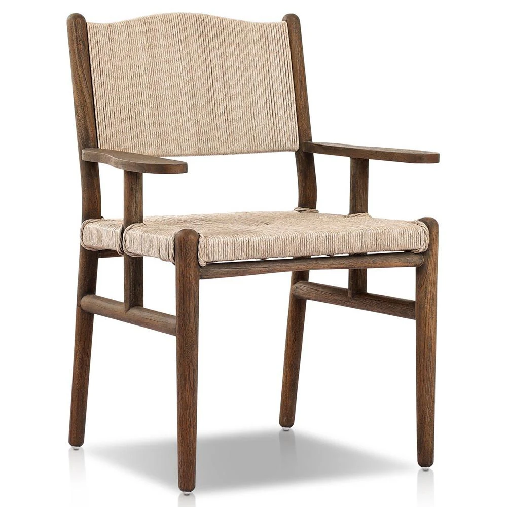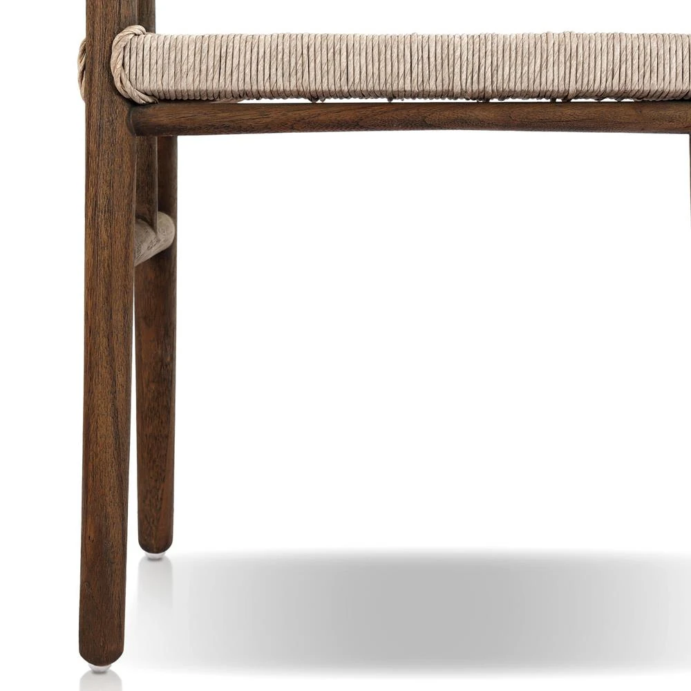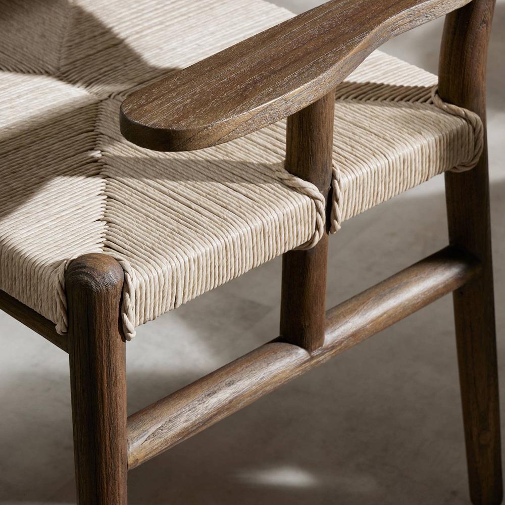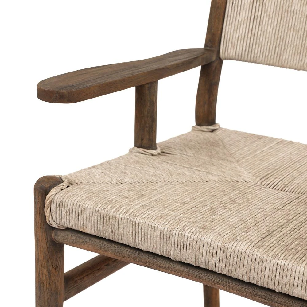 • Cheryl Modern Light Grey Cushion Woven Rope Natural Teak Outdoor Dining Arm Chair|Kathy Kuo Home