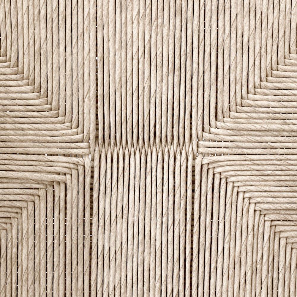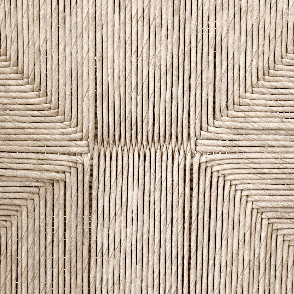 • Cheryl Modern White Cushion Woven Rope Natural Teak Outdoor Dining Arm Chair|Kathy Kuo Home