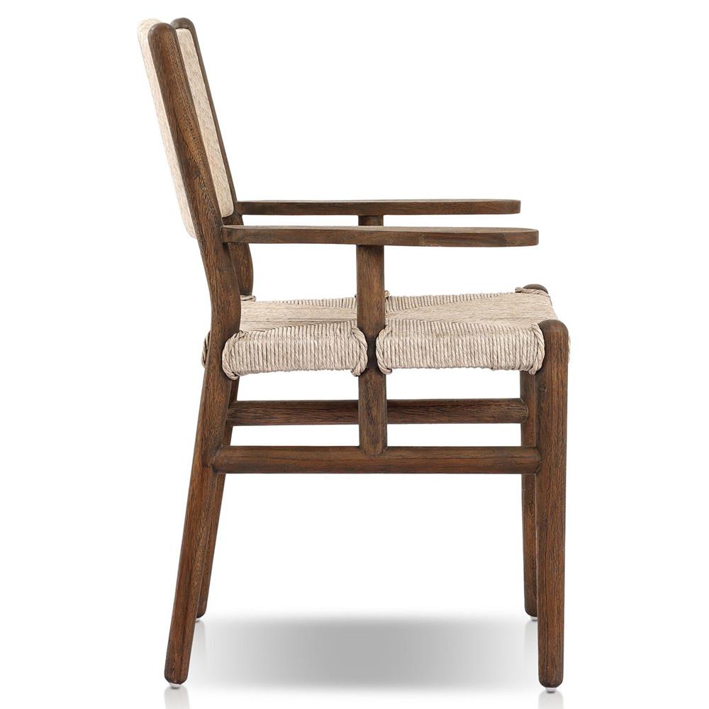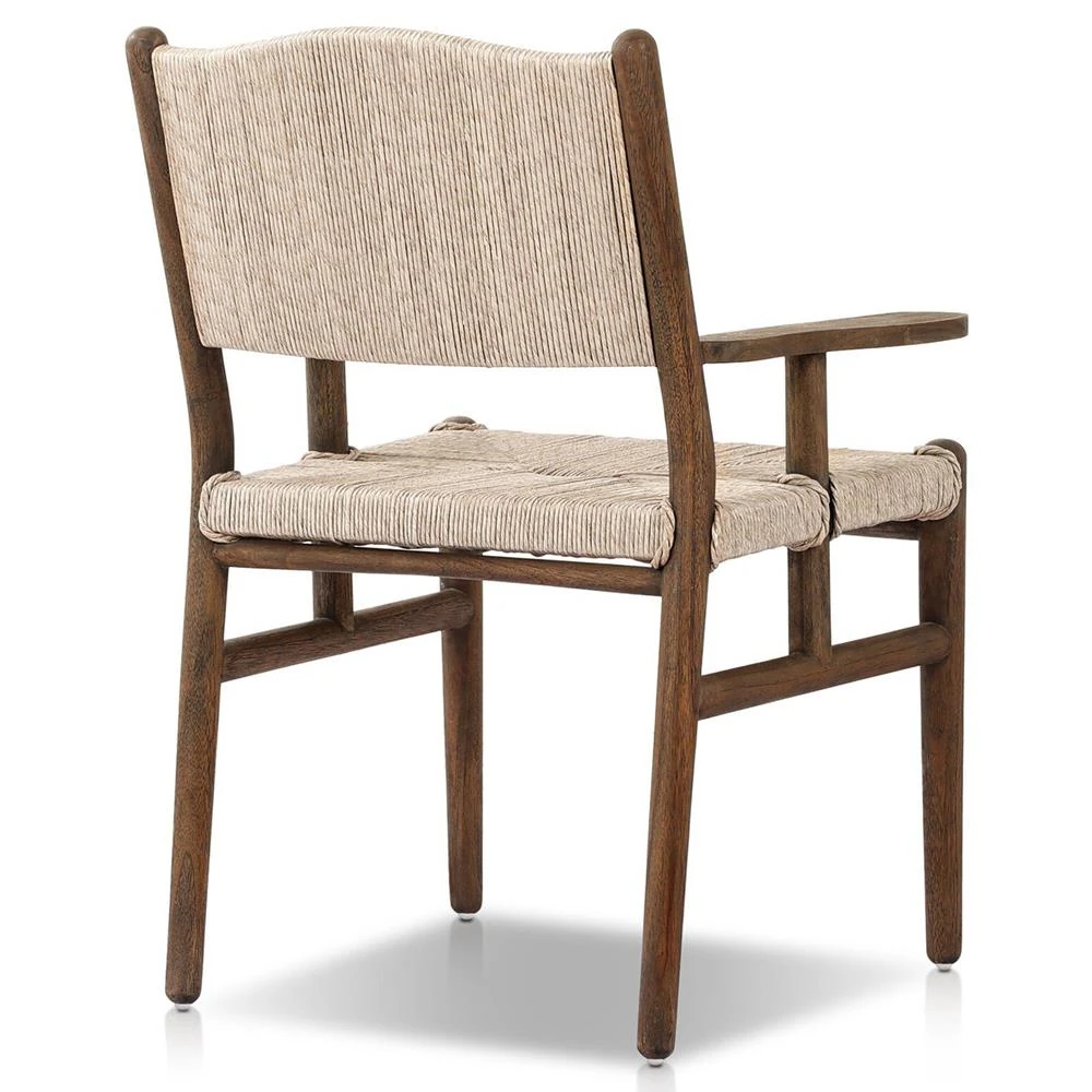 Rose Coastal Off White Upholstered Seat Woven Rope Wood Outdoor Dining Arm Chair