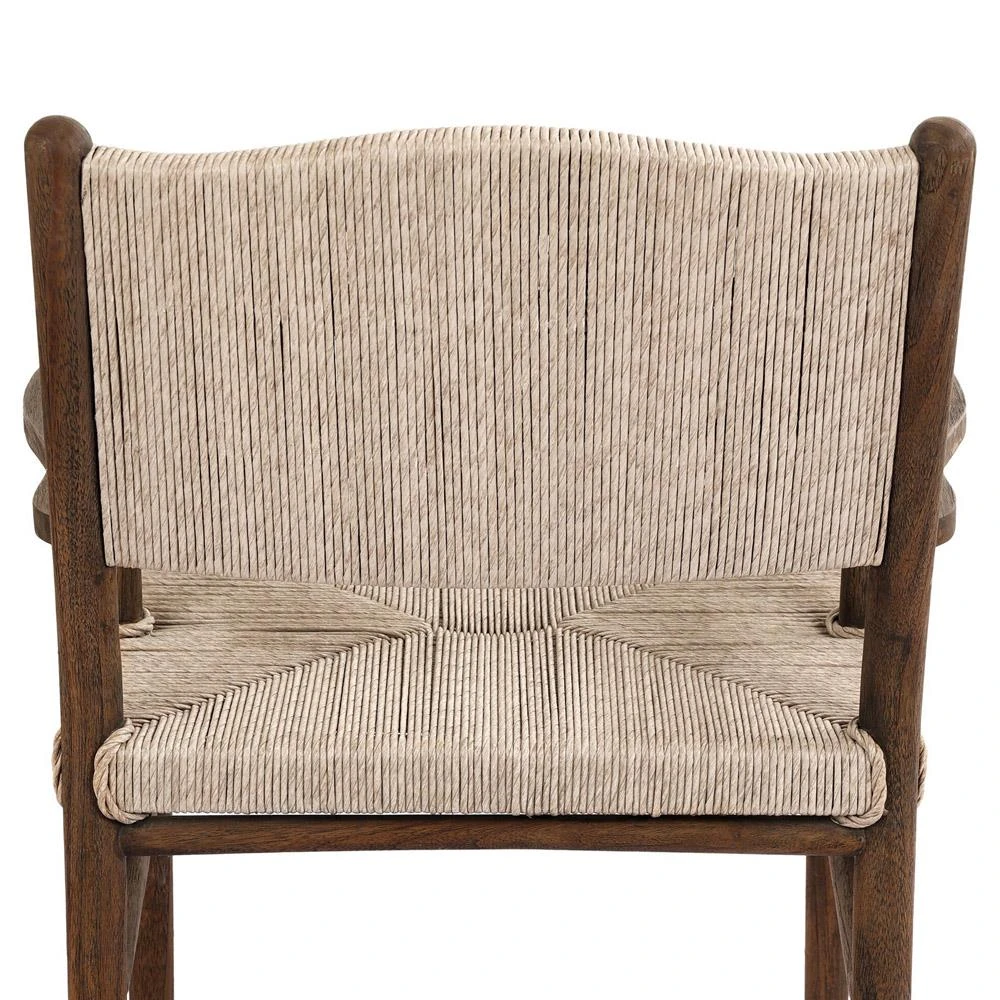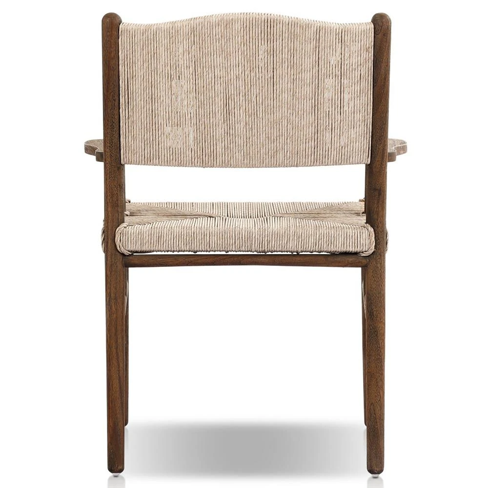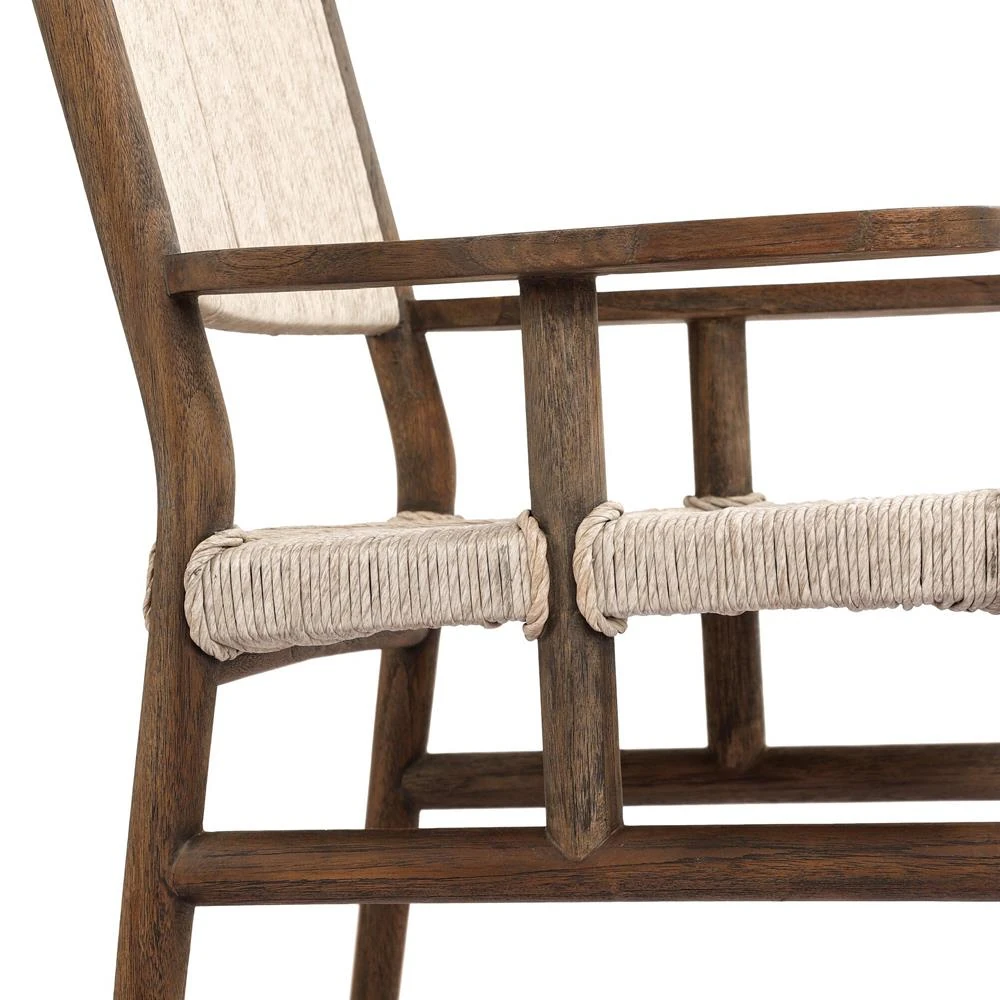 Hirom Rustic Lodge Woven Brown Teak Wood Outdoor Dining Arm Chair
