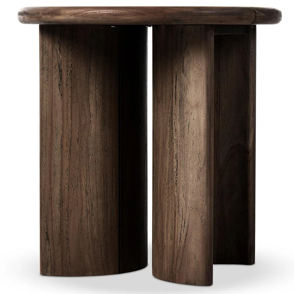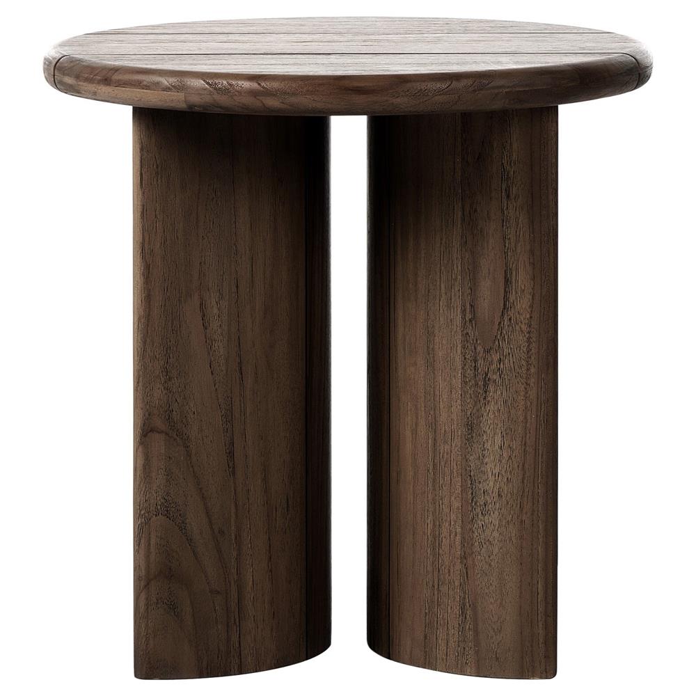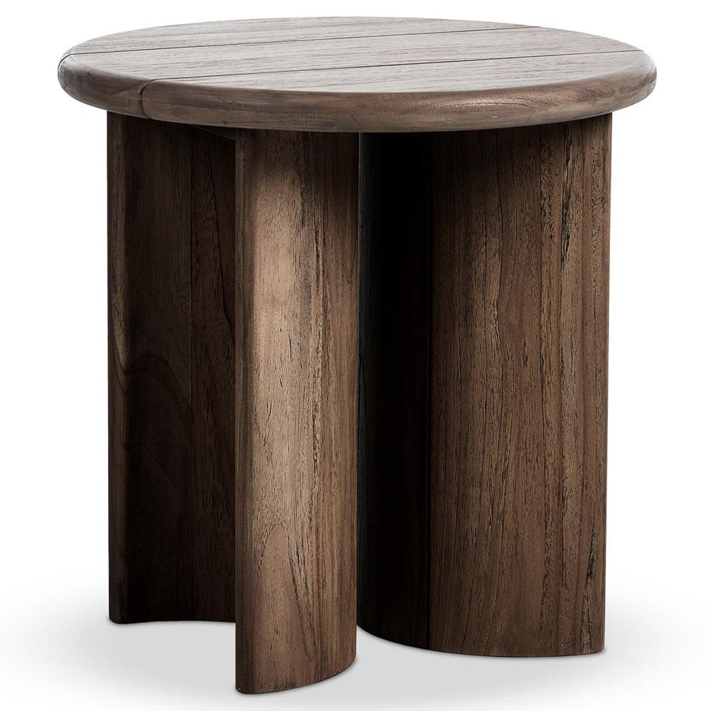 Paris Rustic Lodge Brown Teak Outdoor Round End Table