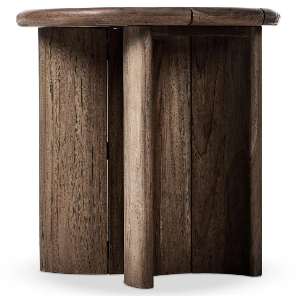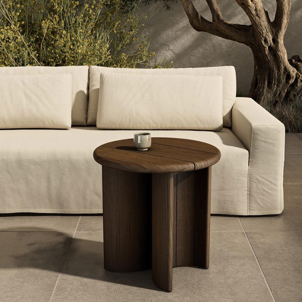 • Lydia Global Bazaar Natural Teak Wood Round Outdoor Side End Table|Kathy Kuo Home