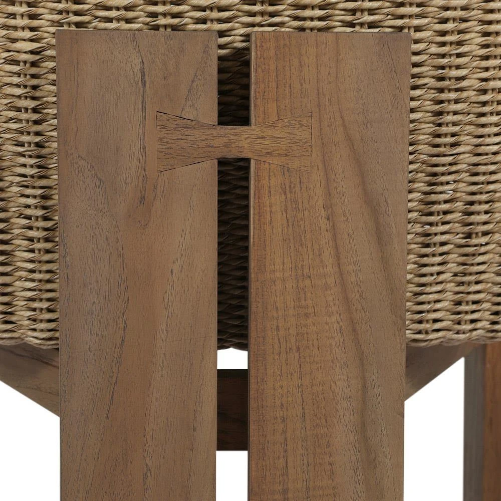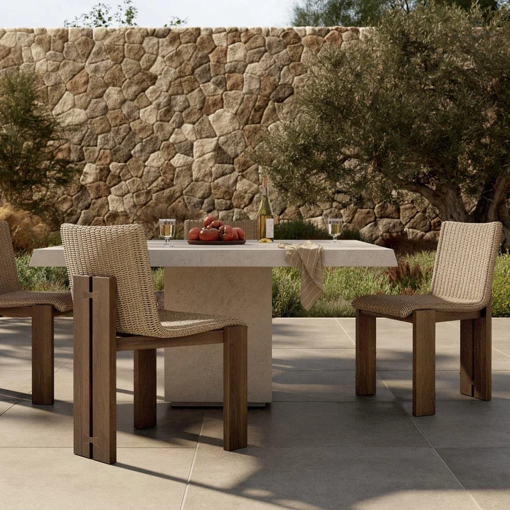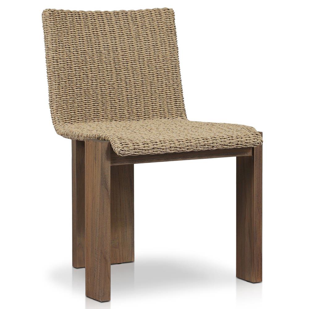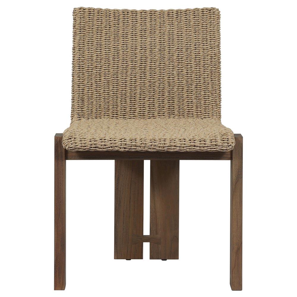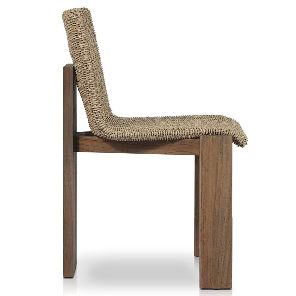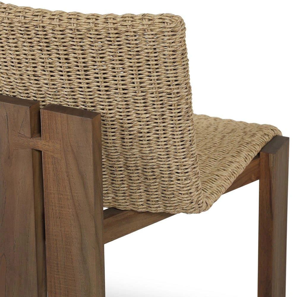 • Cassel Coastal Beach Brown Teak Woven Outdoor Dining Chair|Kathy Kuo Home