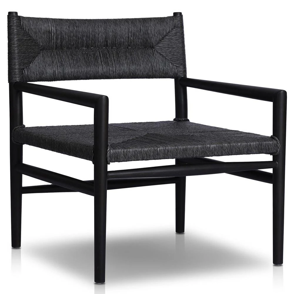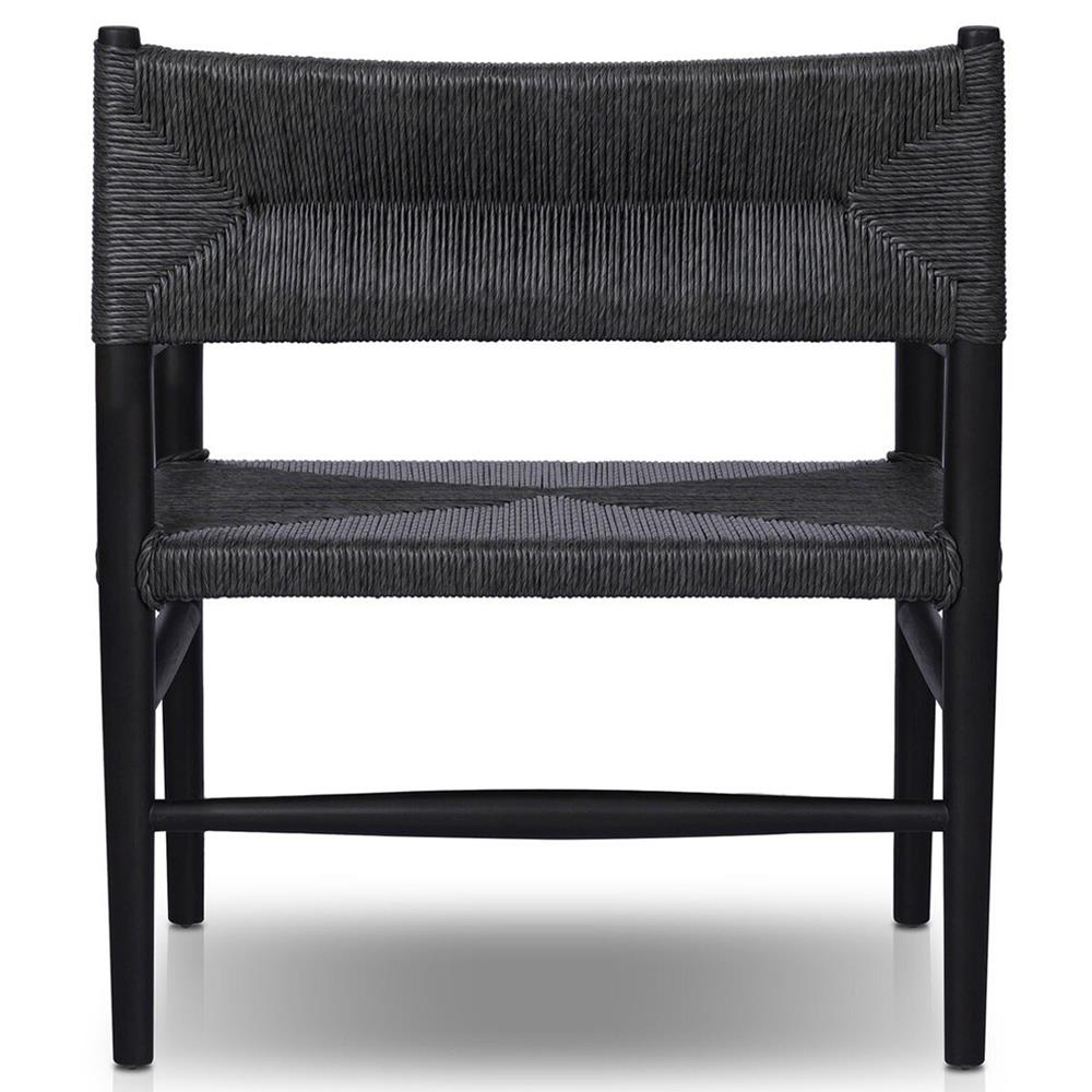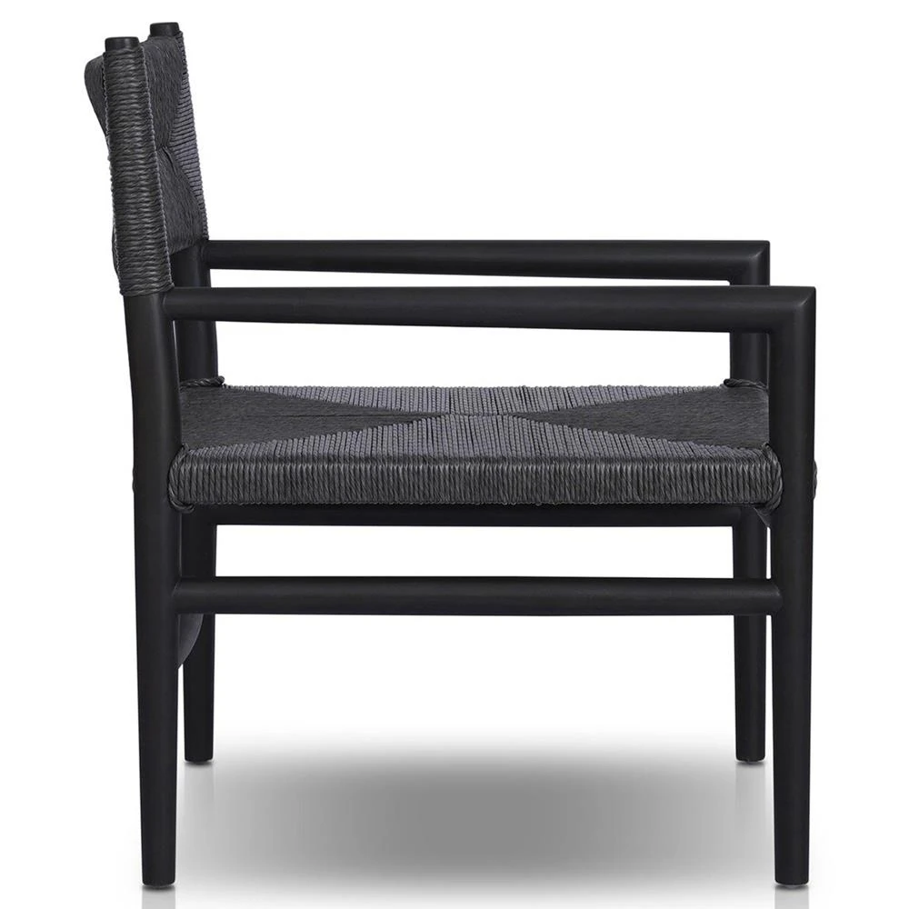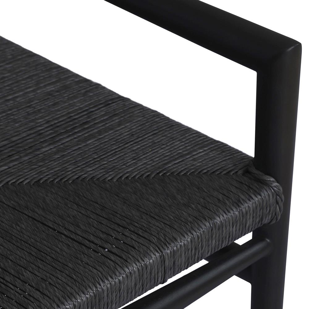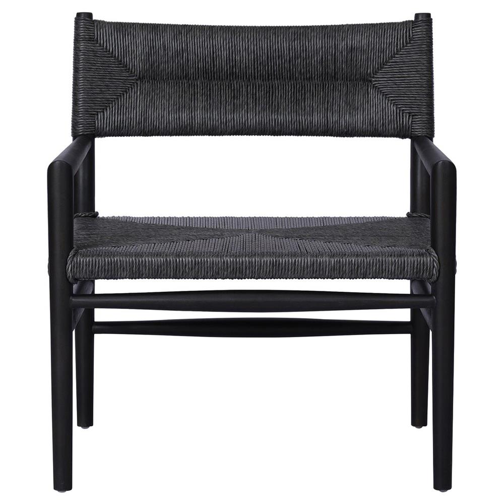 Mable Coastal Beach Black Wicker Teak Outdoor Chair