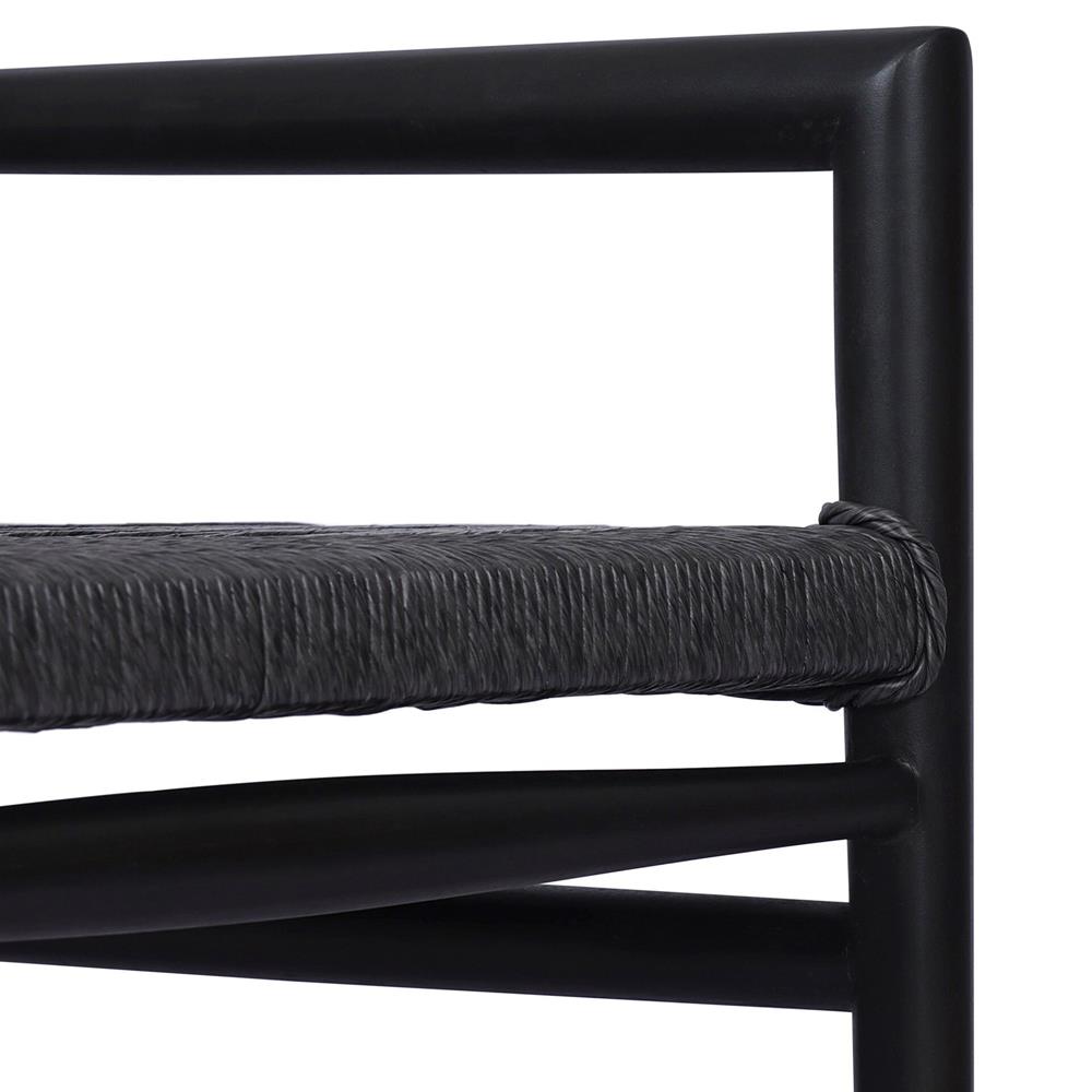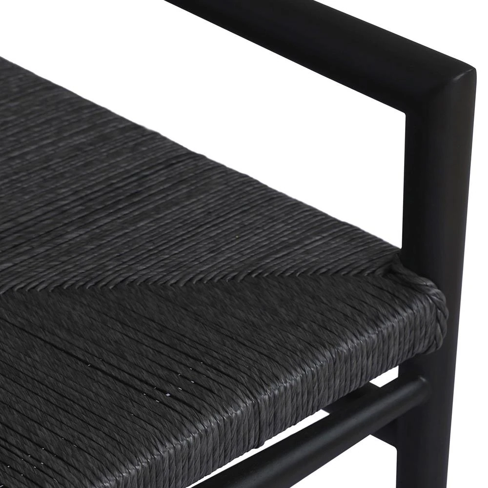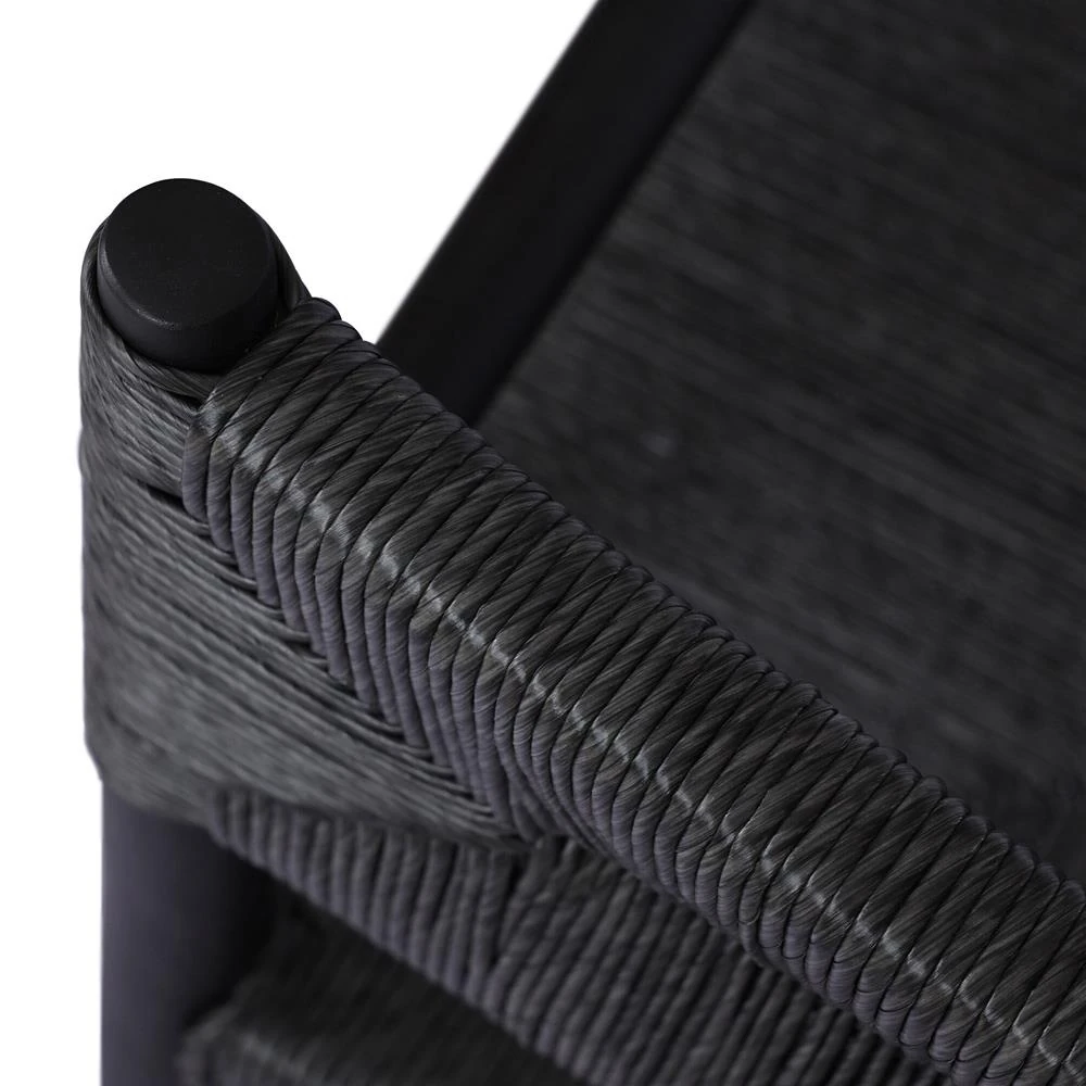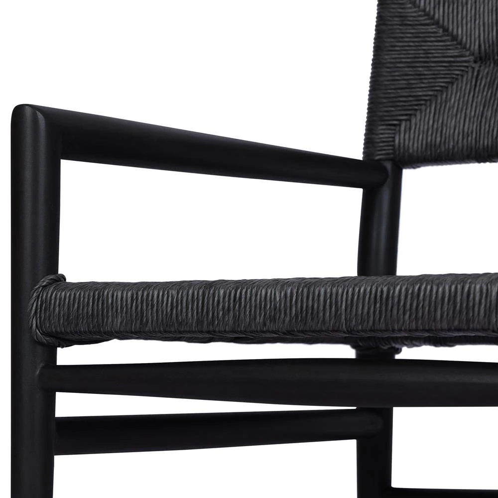 Mable Coastal Beach Black Wicker Teak Outdoor Dining Arm Chair