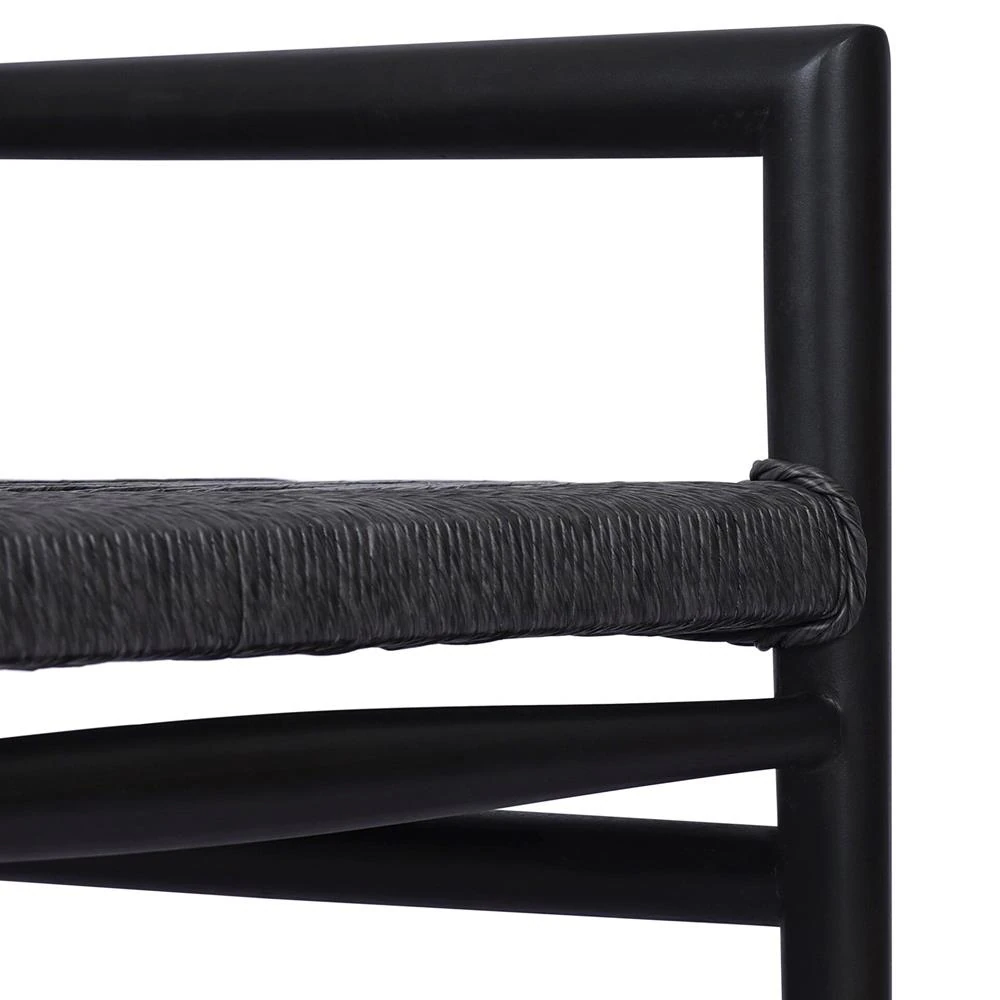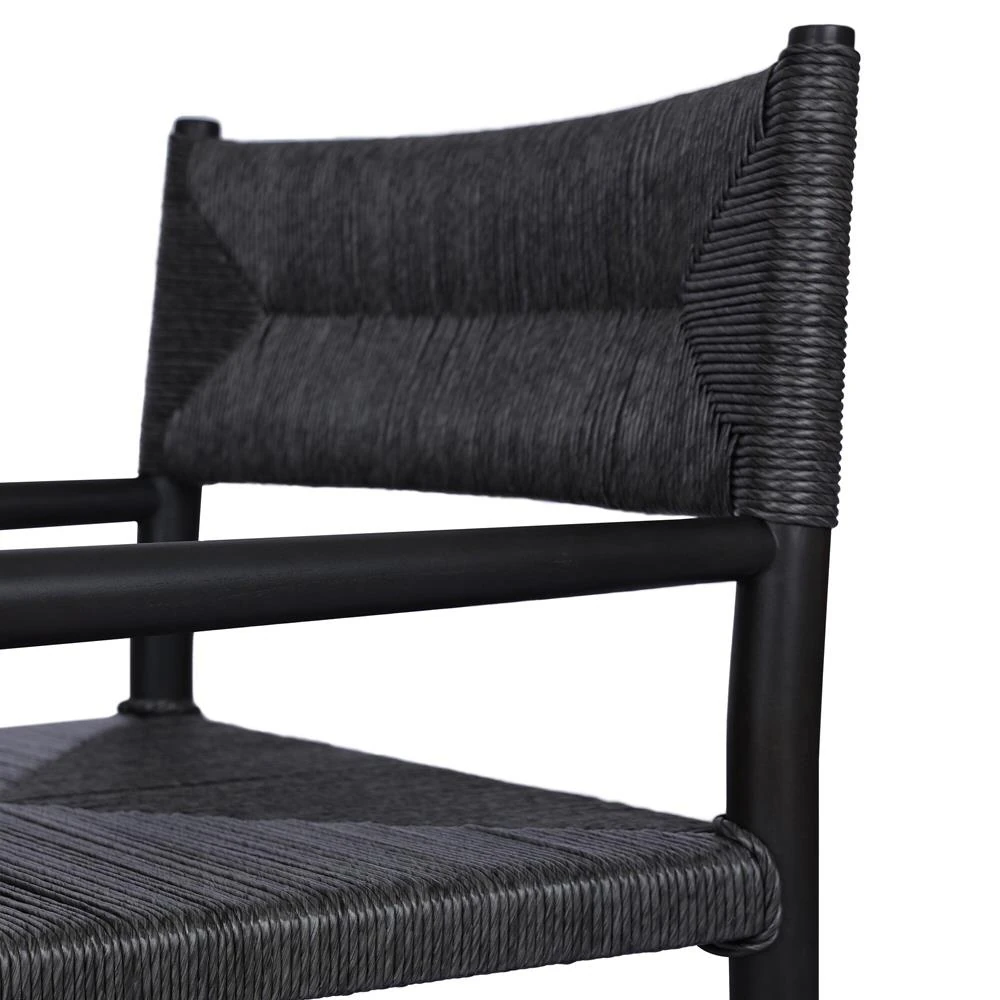 • Mable Coastal Beach Black Wicker Teak Outdoor Dining Arm Chair|Kathy Kuo Home