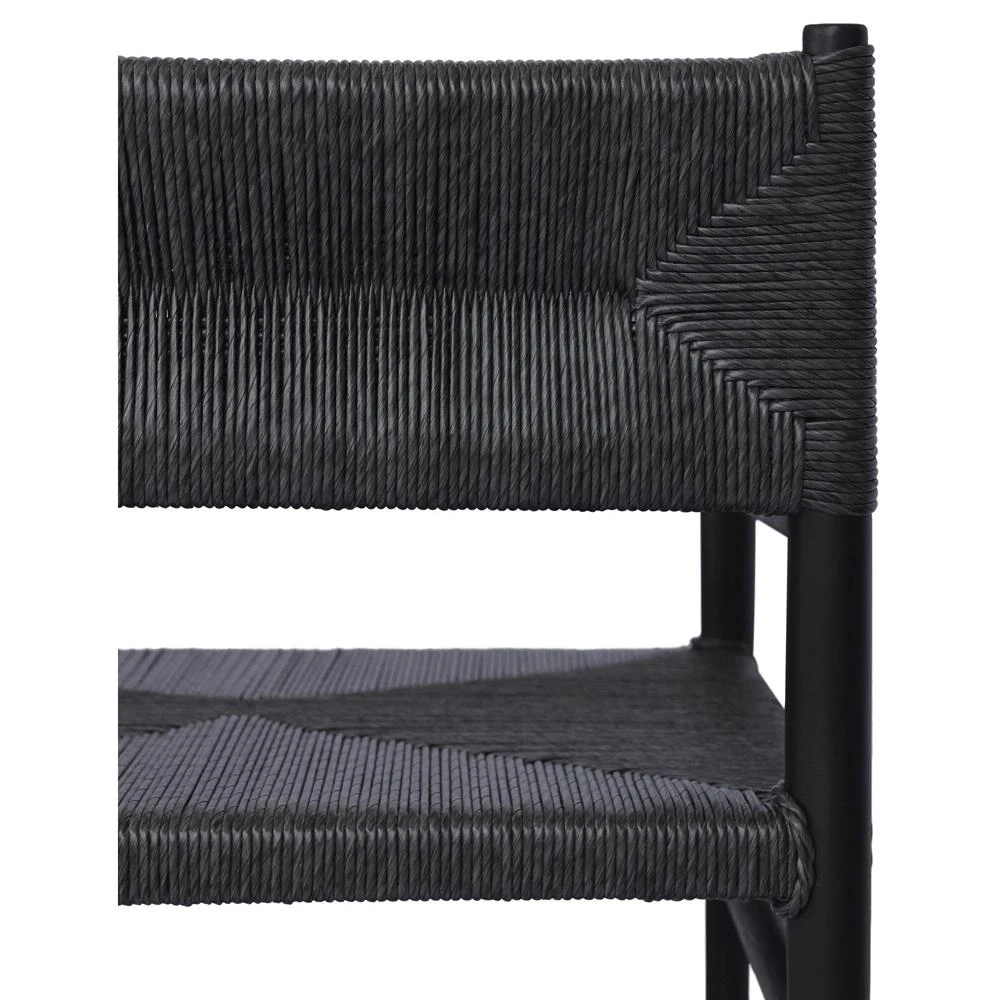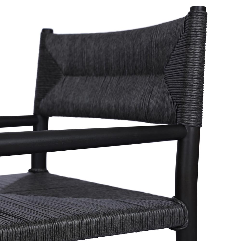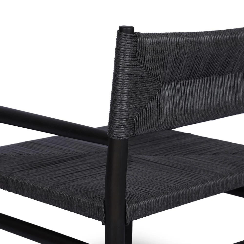 • Porter Modern Classic Tall Grey Cushion Black Woven Metal Outdoor Dining Chair|Kathy Kuo Home