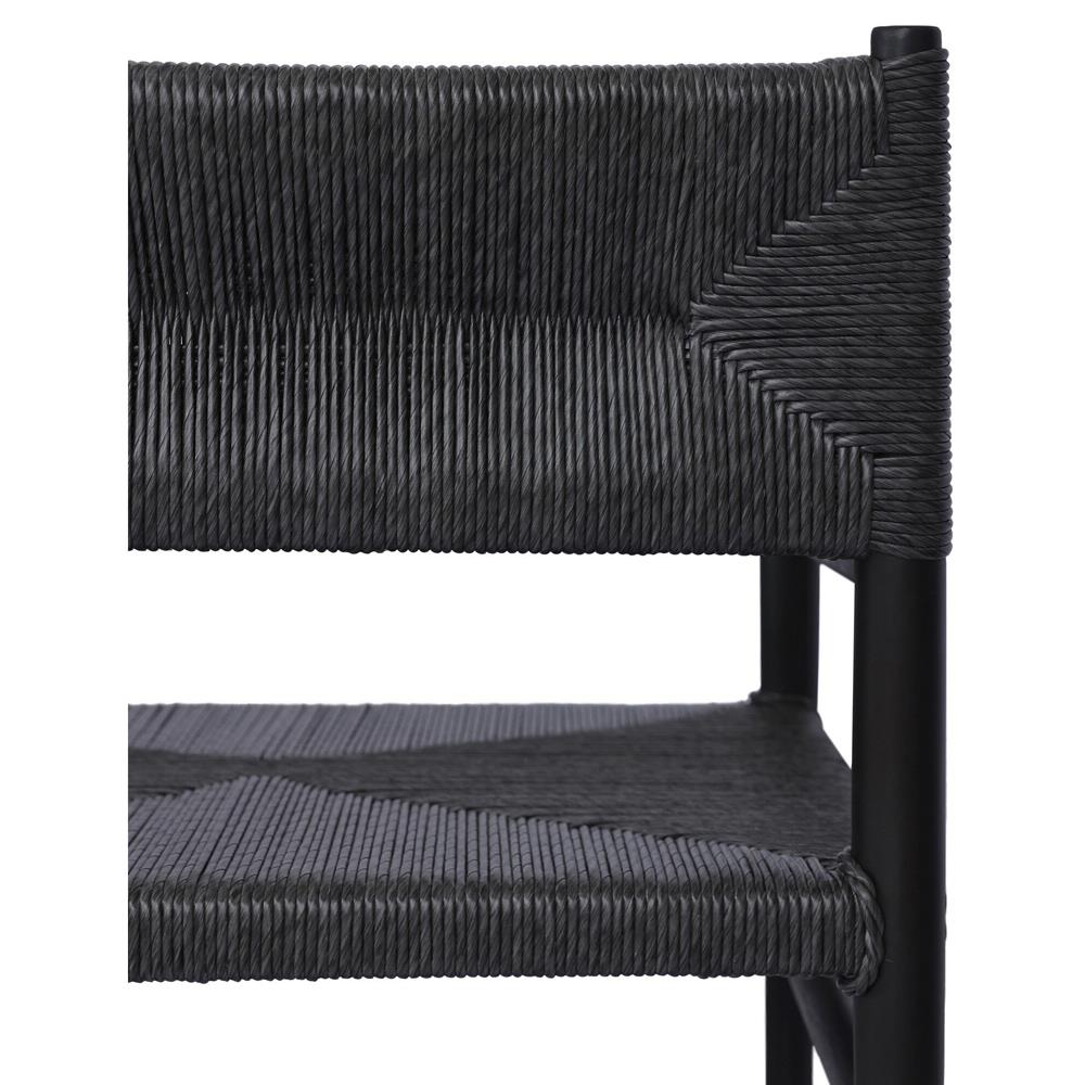 Mable Coastal Beach Black Wicker Teak Outdoor Dining Chair