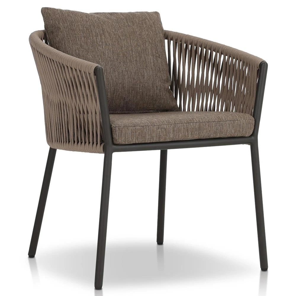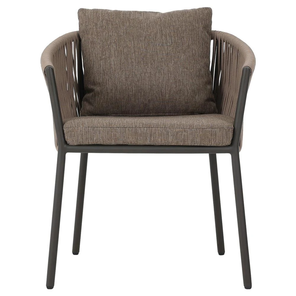 Porter Coastal Brown Upholstered Bronze Aluminum Outdoor Dining Arm Chair