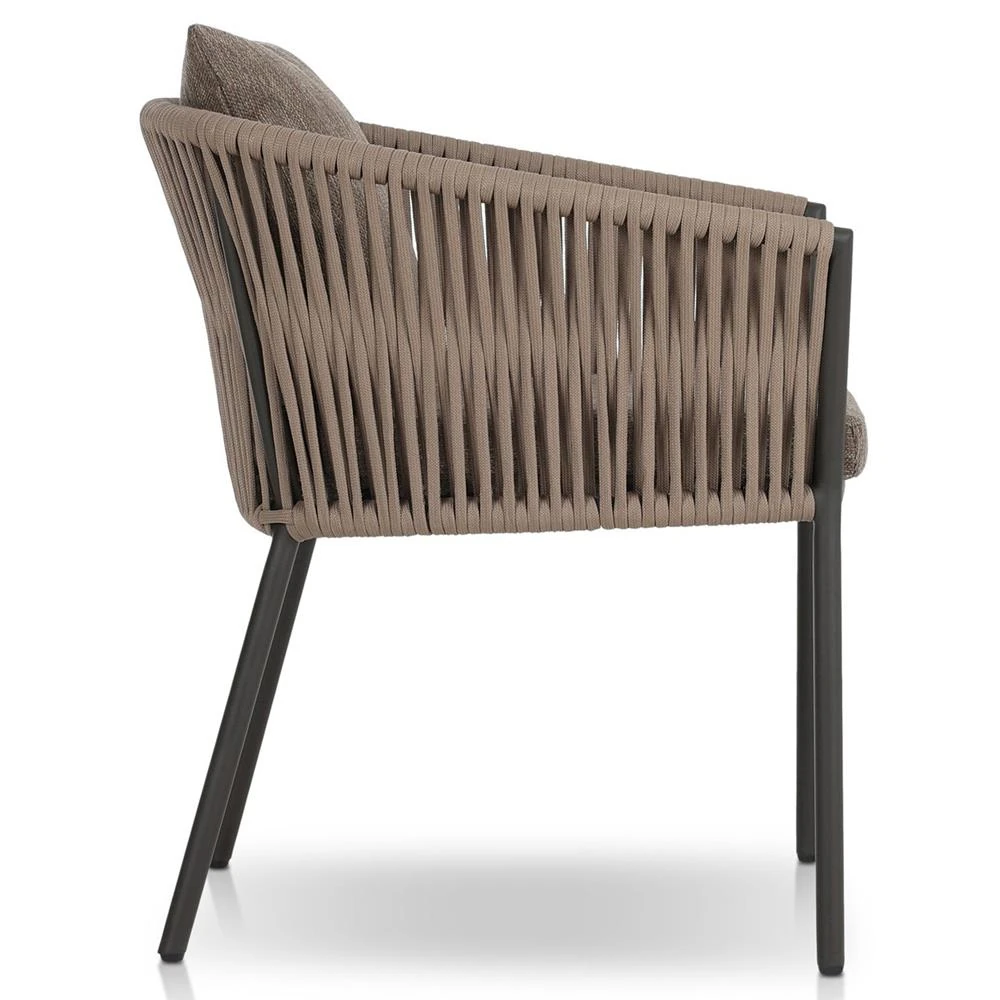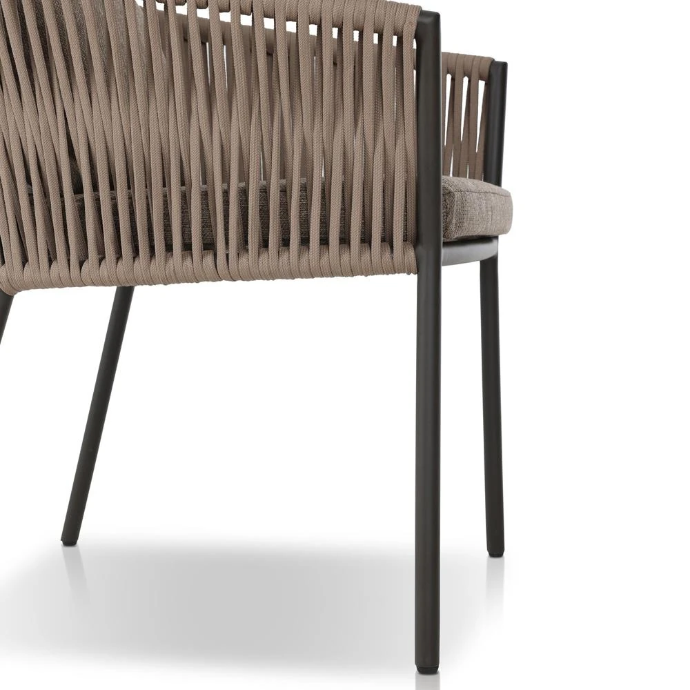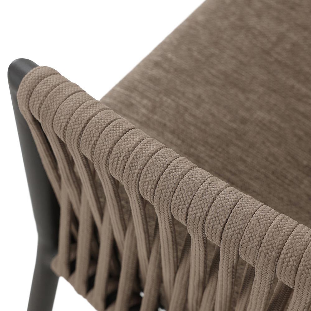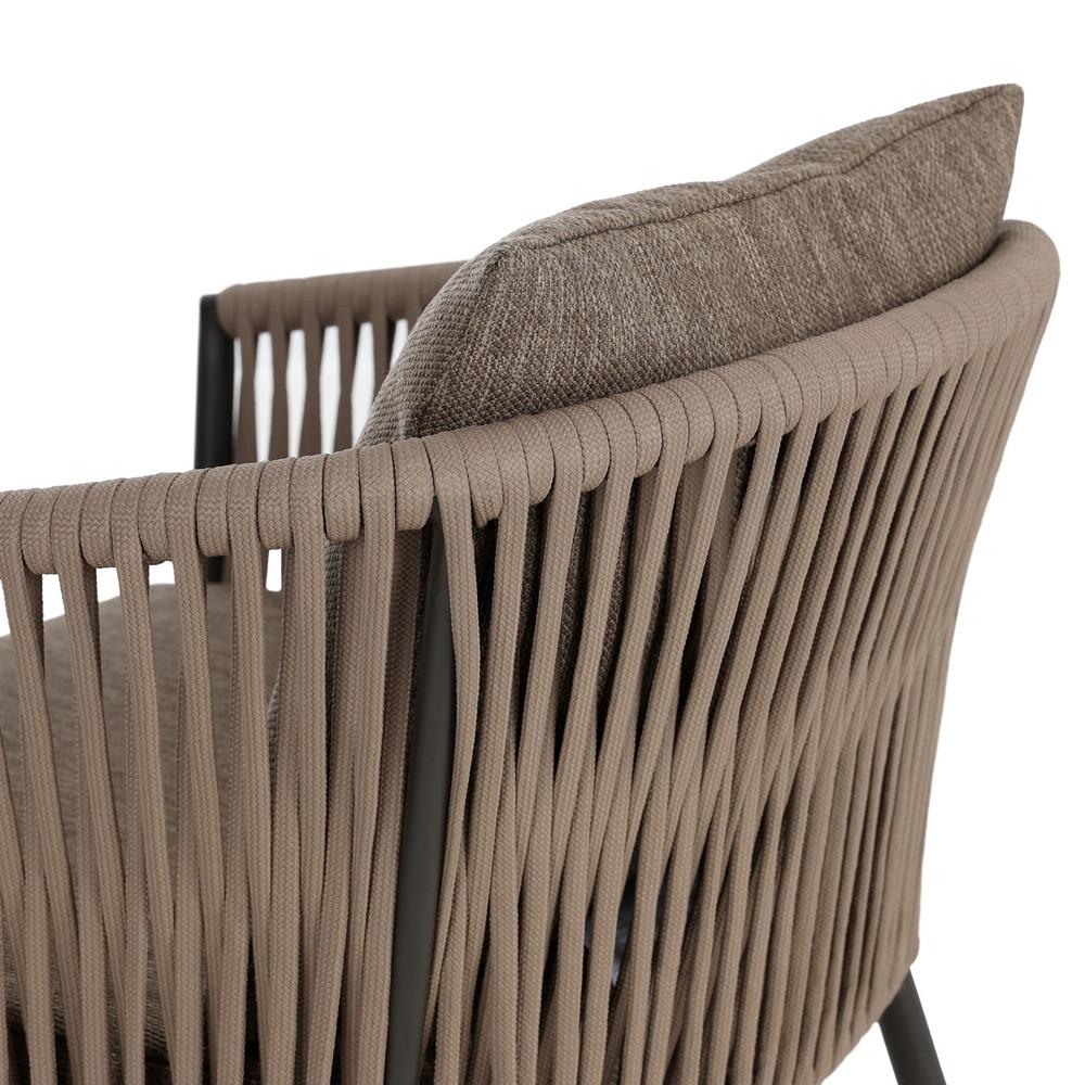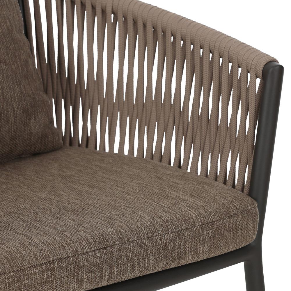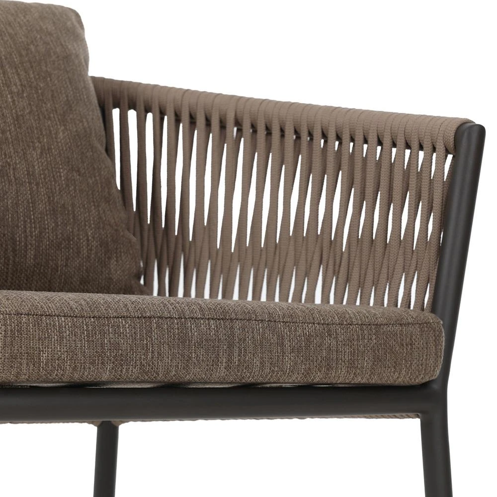• Features a rope-based design woven across a durable aluminum frame, with a box seat cushion and knife-edge back cushion, upholstered in UV-resistant, water-repellent, and quick-drying 100% olefin