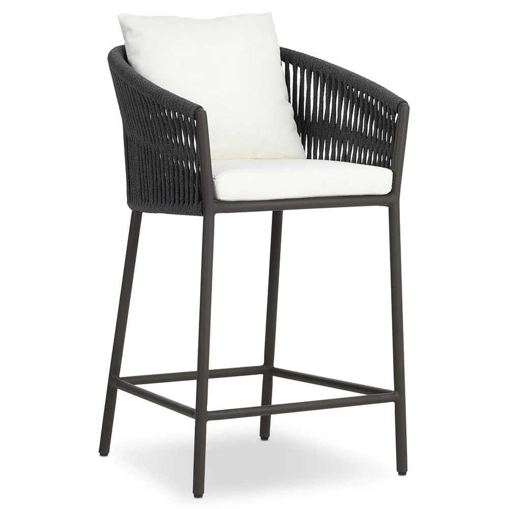 Aurore Cream Cushion Black Welt Metal Outdoor Bar Stool