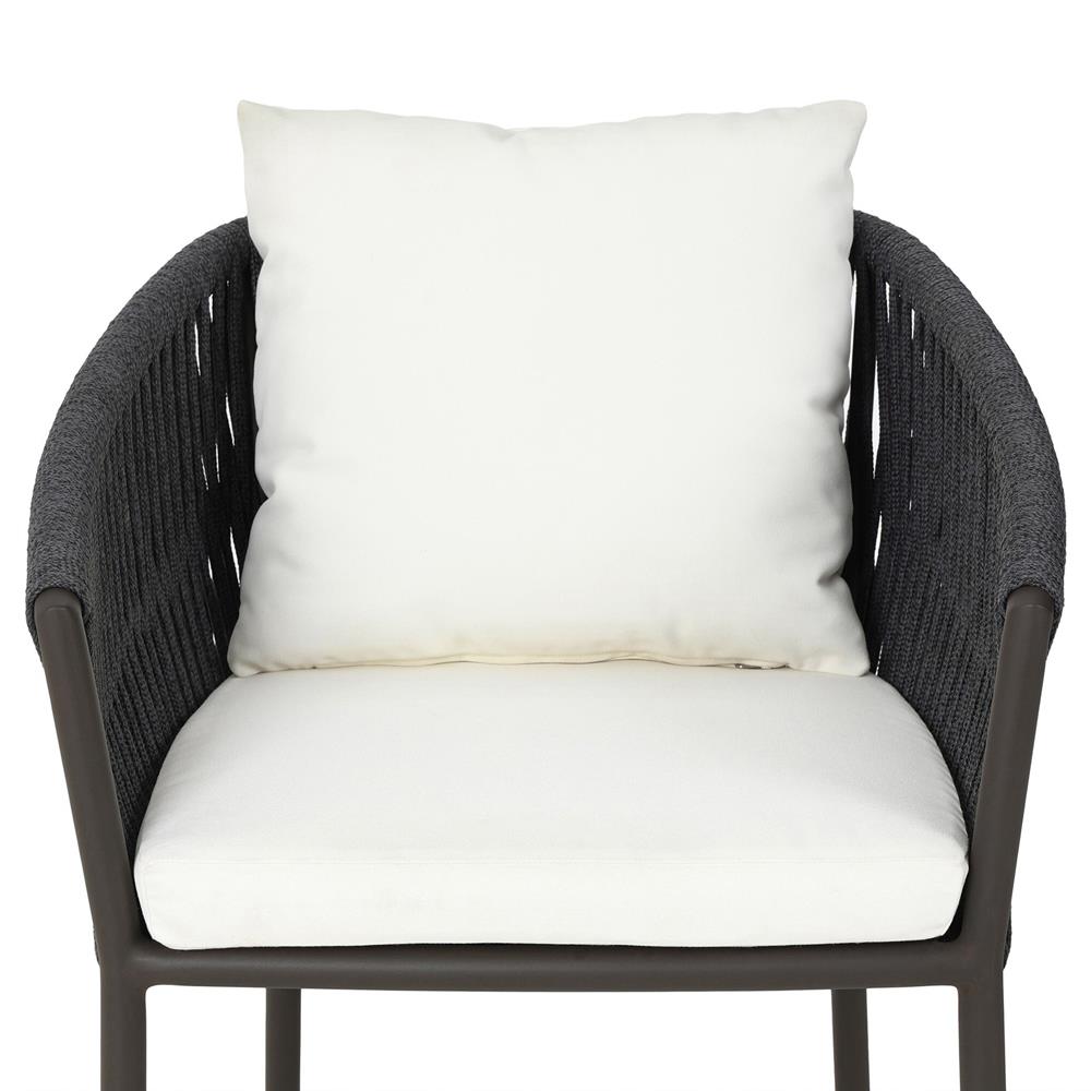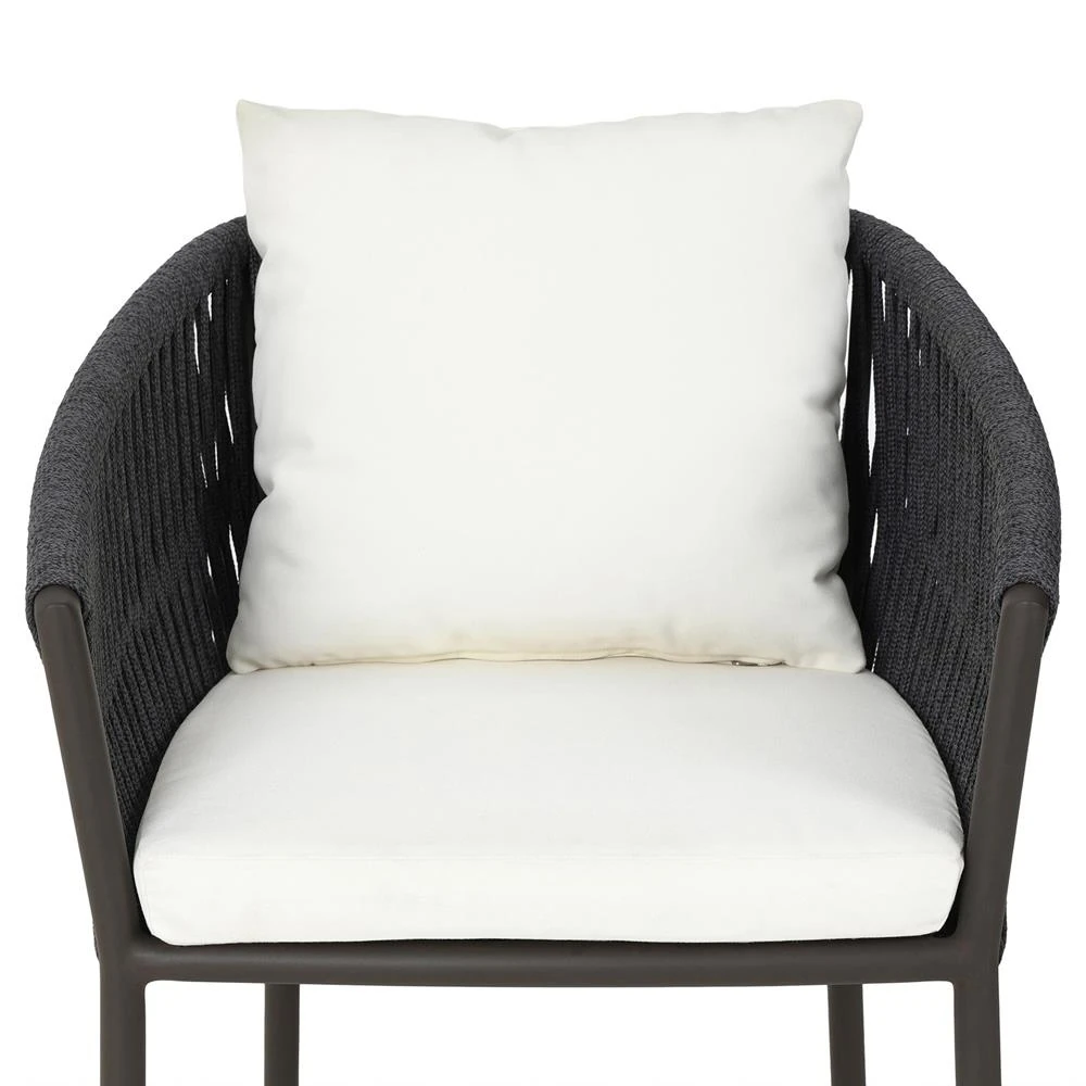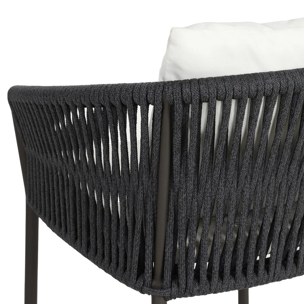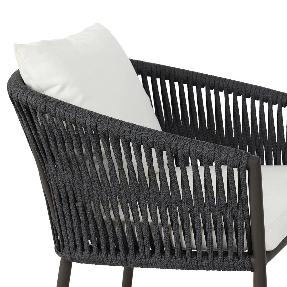 • Features a rope-based design woven across a durable aluminum frame, with a box seat cushion and knife-edge back cushion, upholstered in UV-resistant, water-repellent, and quick-drying 100% olefin