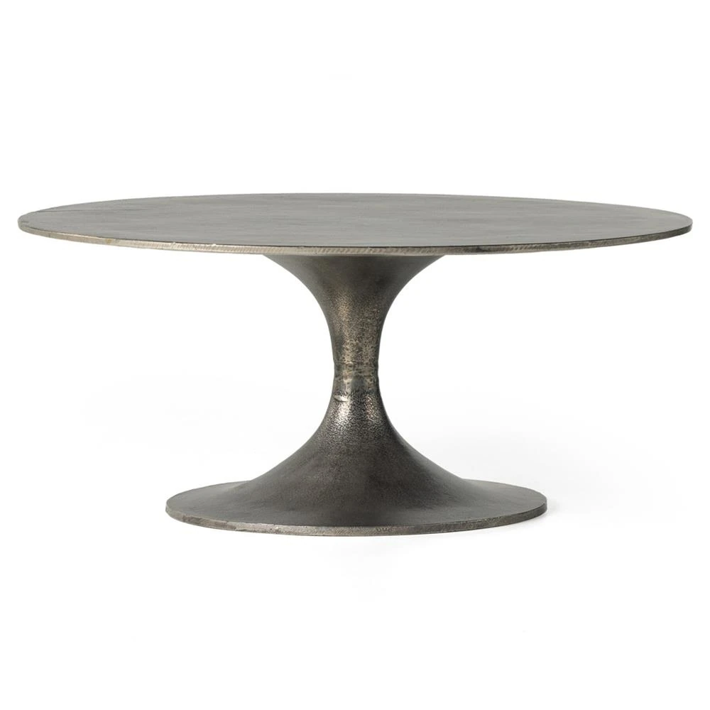 • Mona French Country Brown Aluminum Round Pedestal Coffee Table|Kathy Kuo Home