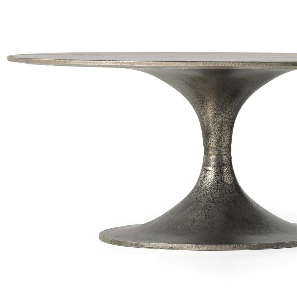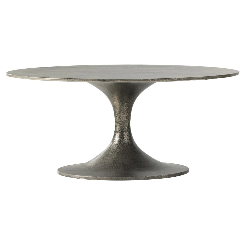 Mona French Country Grey Aluminum Oval Pedestal Outdoor Coffee Table