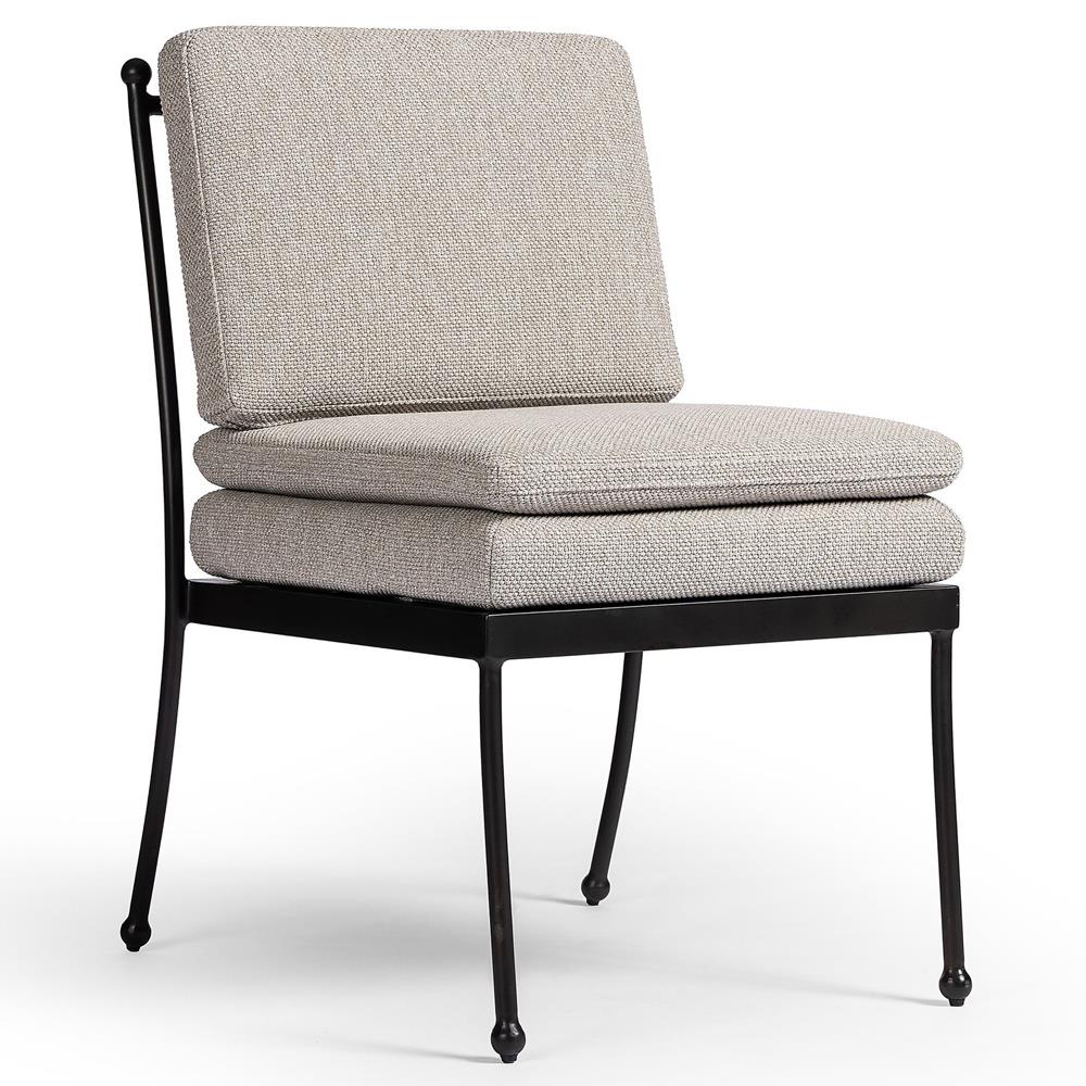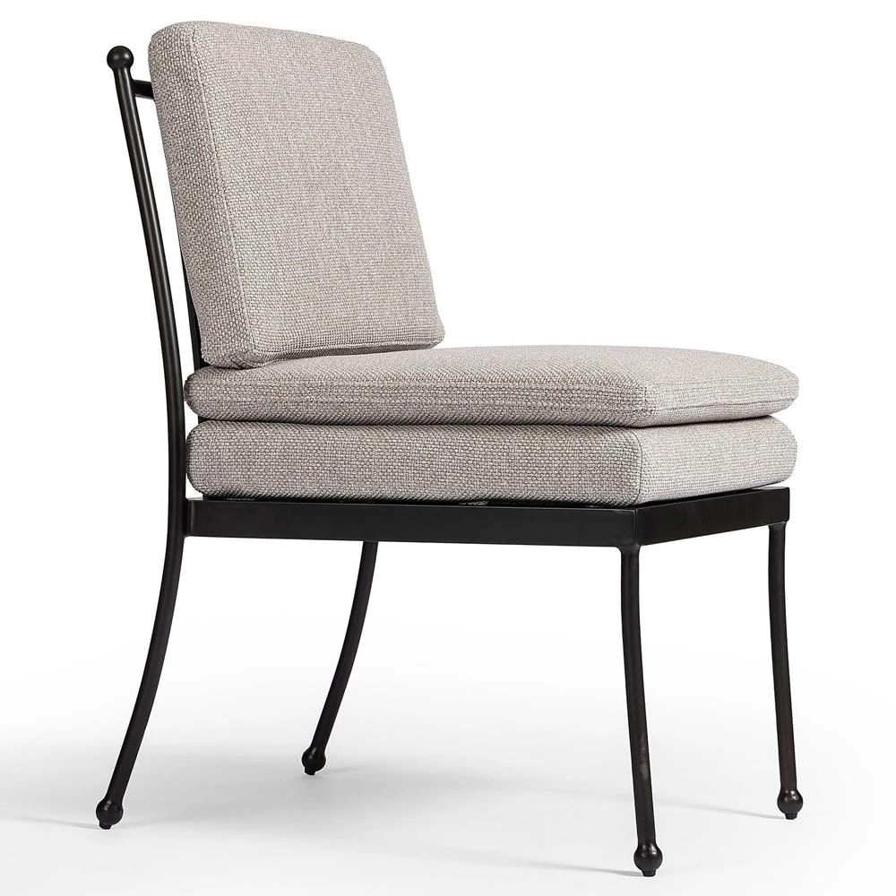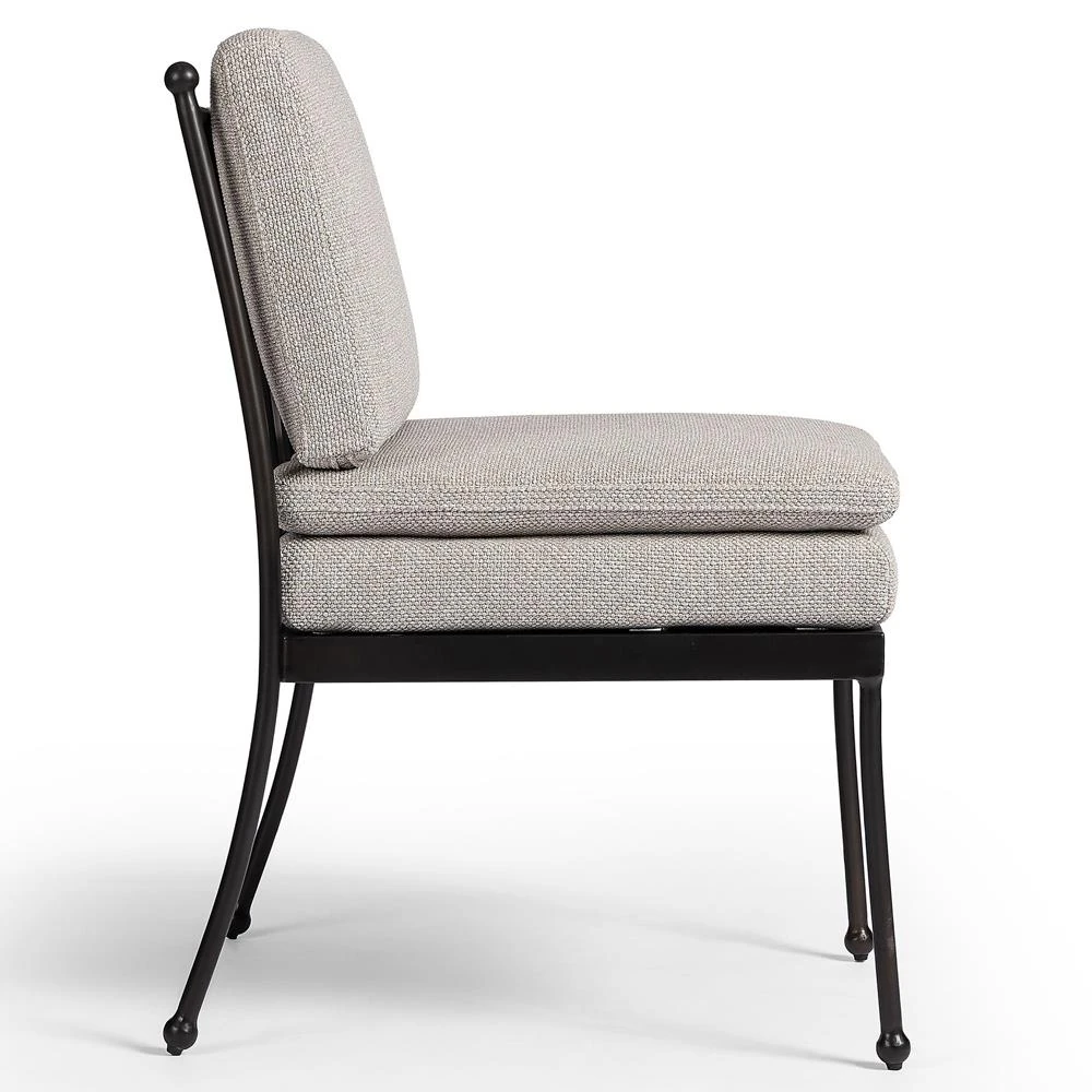 Gretchen French Country Grey Upholstered Black Aluminum Outdoor Dining Chair