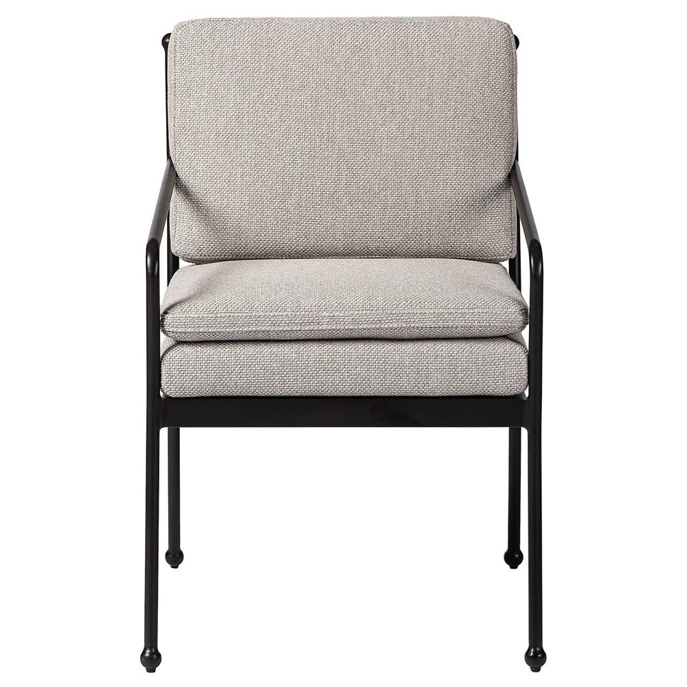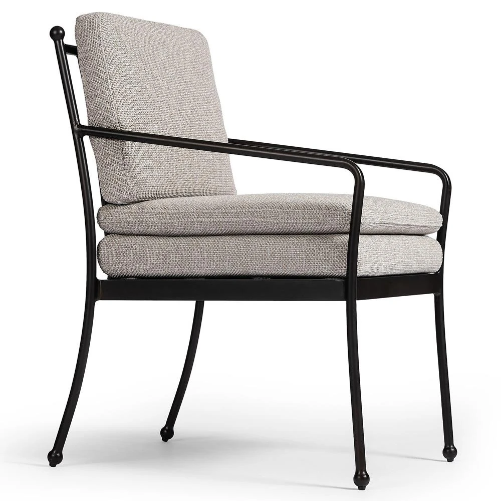 Gretchen French Country Grey Upholstered Black Aluminum Outdoor Dining Arm Chair